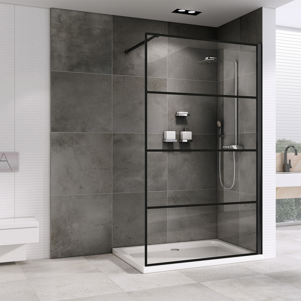 Душевая стенка Abber Immer Offen 120x200 стекло прозрачное, профиль черный (AG65120B)