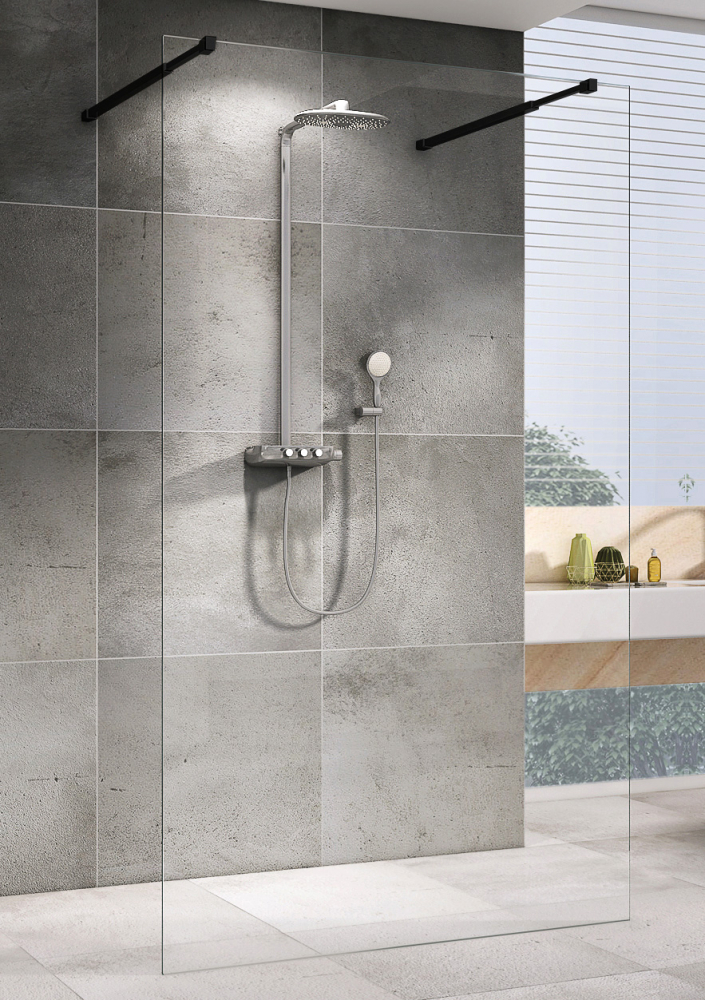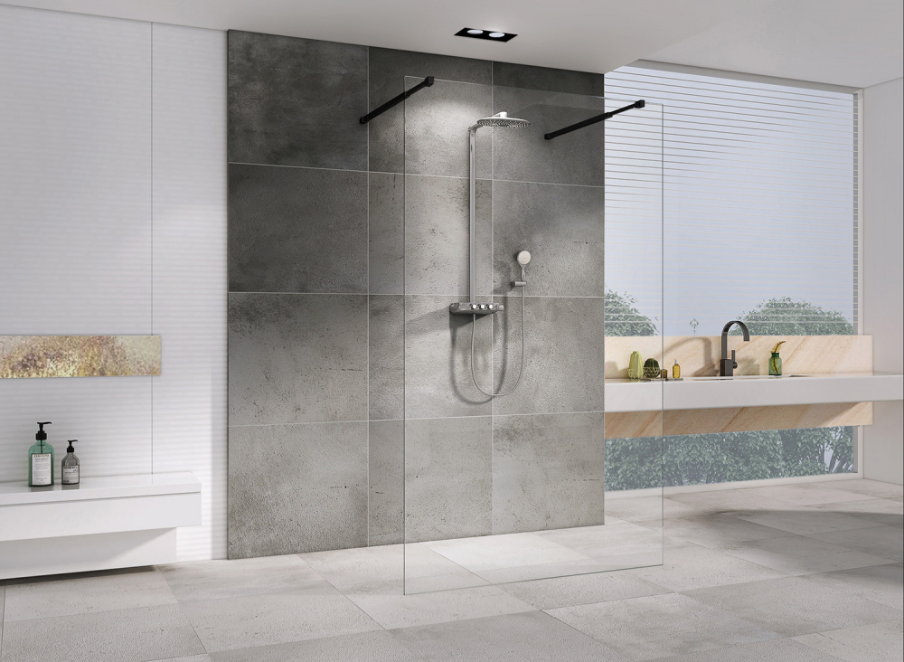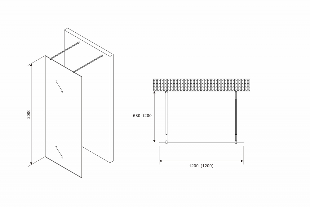 Душевая стенка Abber Immer Offen 120x200 стекло прозрачное, профиль черный (AG68120B8)