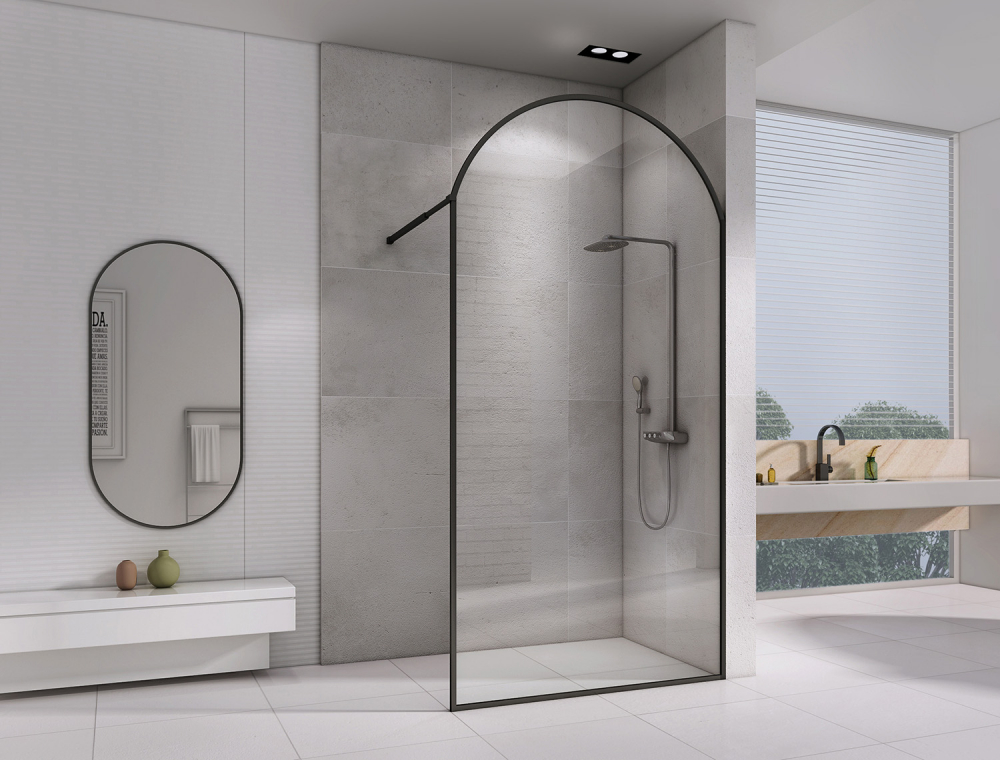Душевая стенка Abber Immer Offen 120x230 стекло прозрачное, профиль черный (AG64120BN8)