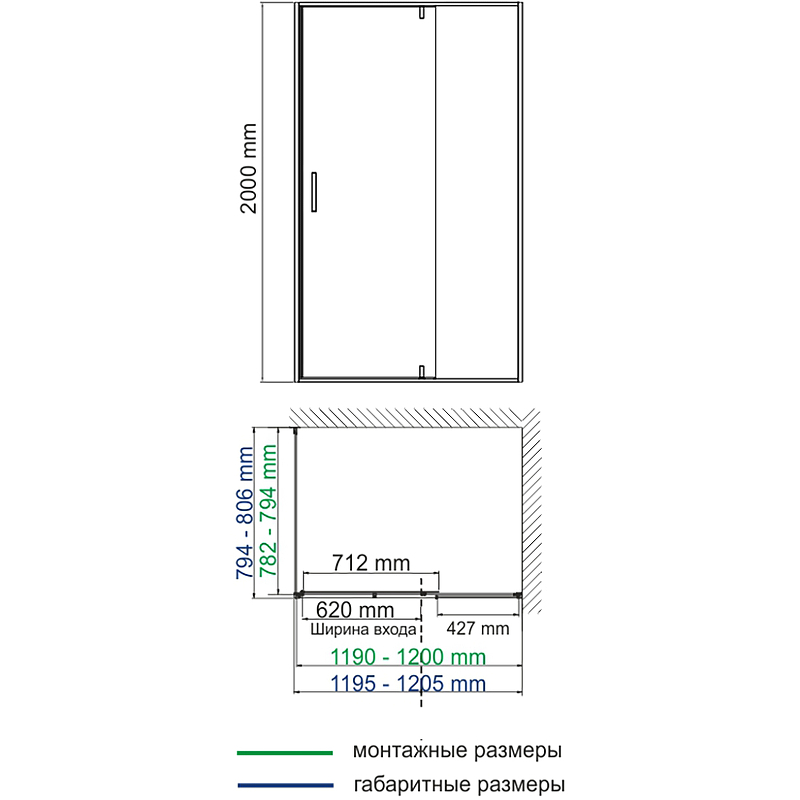 Душевая стенка WasserKRAFT Elbe 74P 80х200 стекло прозрачное, профиль черный (74P06-RP80 / Dill 61S06-RP80)