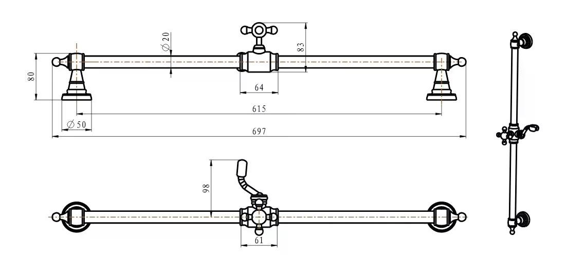 Душевая стойка Boheme Imperiale 69,7 см золото (417)