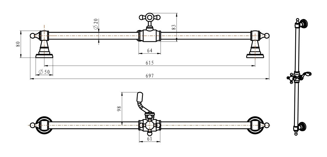 Душевая стойка Boheme Medici 69,7 см бронза (416)