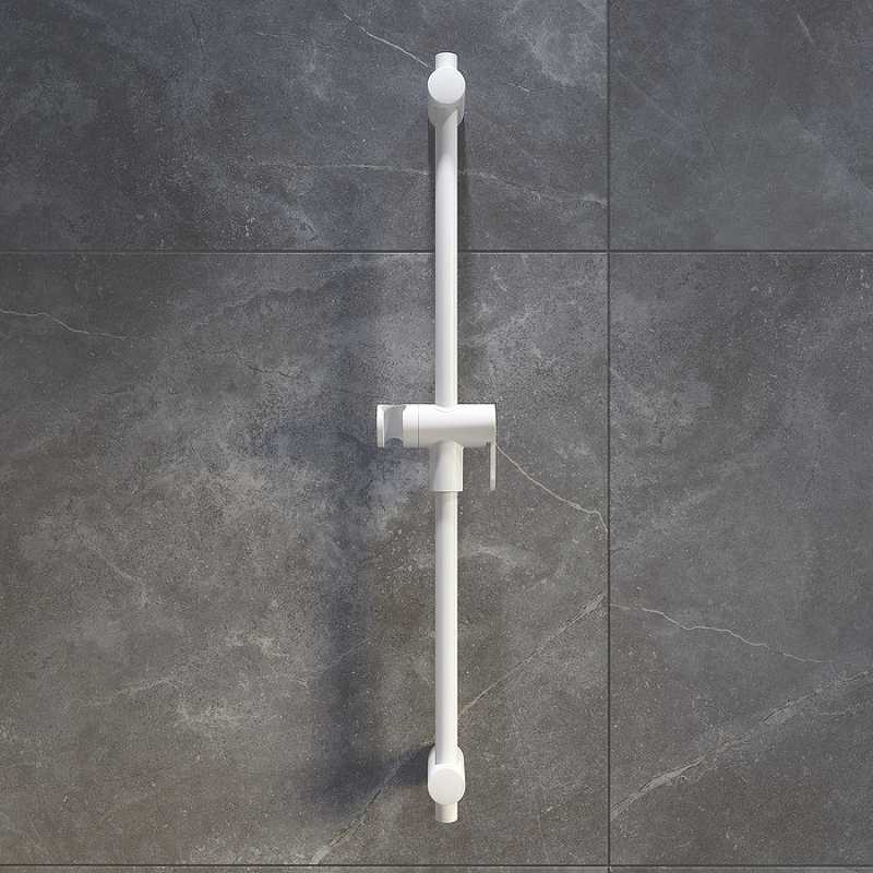 Душевая стойка. Цвет- белый матовый. Размеры -20.6*0.5*700 мм. Материал ABS пластик. Регуляровка высоты держателя-рычажная