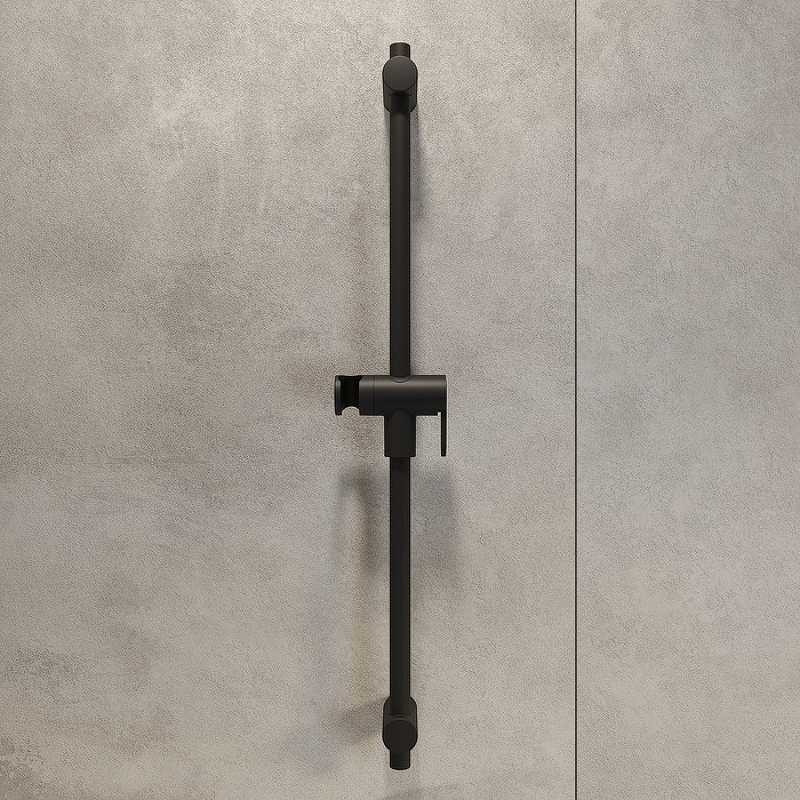 Душевая стойка. Цвет- черный матовый. Размеры -20.6*0.5*700 мм. Материал ABS пластик. Регуляровка высоты держателя-рычажная