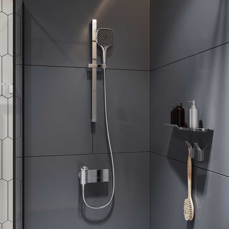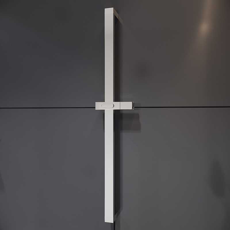 Стойка для душа. Форма квадратная. Цвет хром. Труба из нержавеющей стали 30x15 мм (общая длина 680 мм). Пластиковый хромированный квадратный держатель для лейки и слайдер.