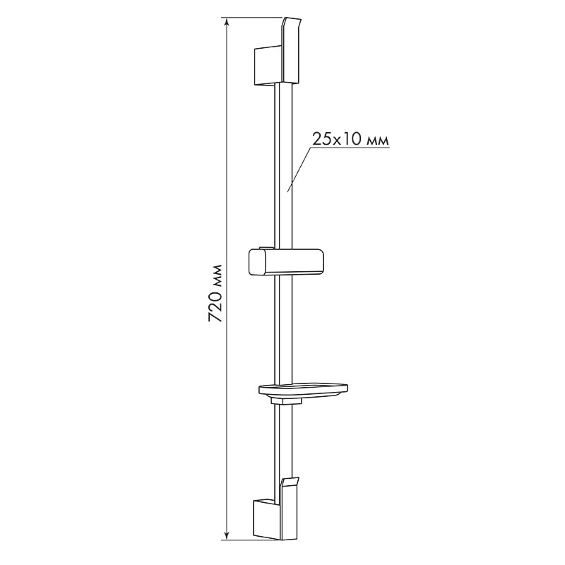 Душевая стойка Melodia Luxe Moderno d25, L720 c мыльницей, черная (MKP25002C_bk)