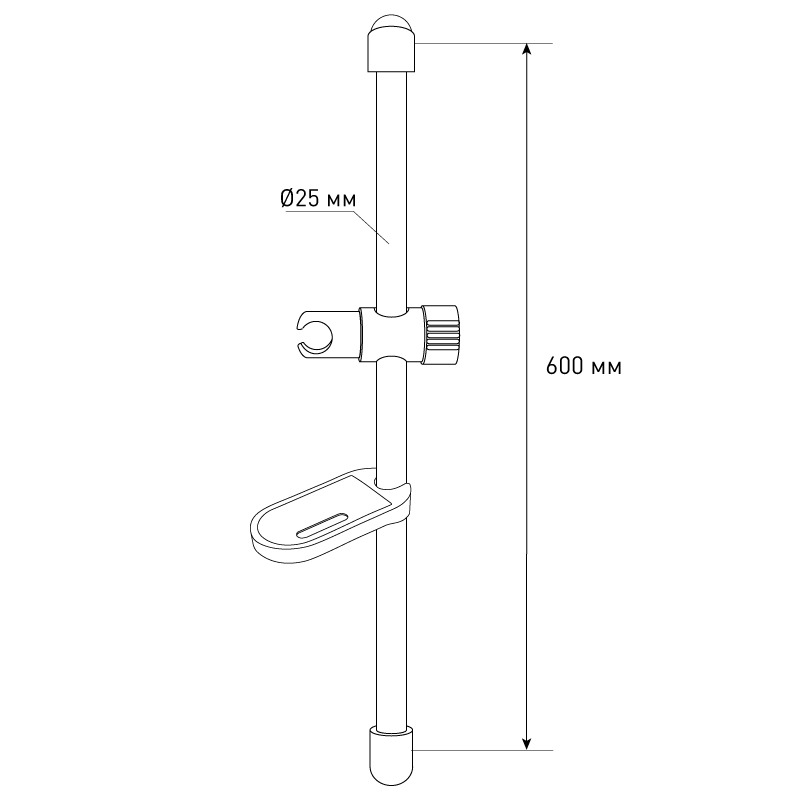 Душевая стойка Melodia с мыльницей d25, L=600 нерж., ABS, хром (MKP20033BL)