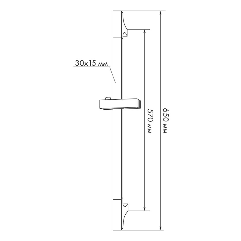 Стойка для душа хромированная из нерж. стали и ABS пластика профиль 30х15мм длиной 65см