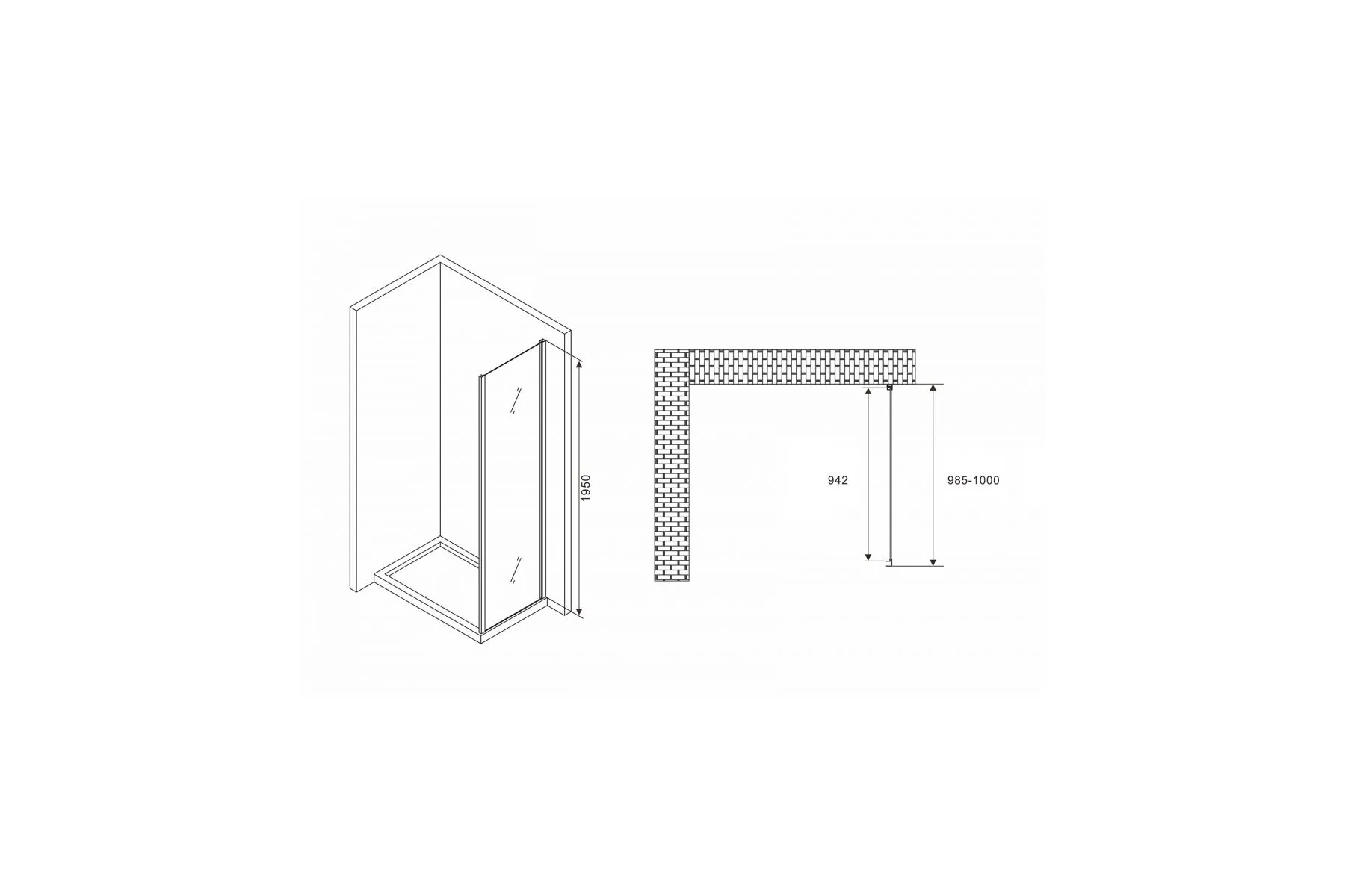 Душевое ограждение Abber Diamant 100x195 стекло прозрачное, профиль черный (S100B)