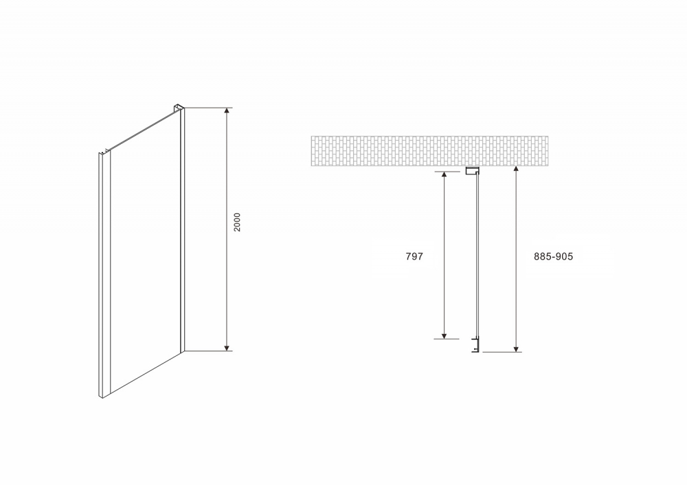 Душевое ограждение Abber Komfort 90x200 стекло прозрачное, профиль черный (S92)
