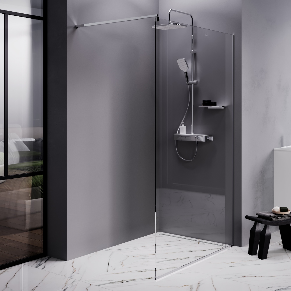 Минималистичная и современная душевая перегородка Walk In не только снизит визуальный шум в ванной но и благодаря оптимальным размерам впишется в любую ванную комнату.