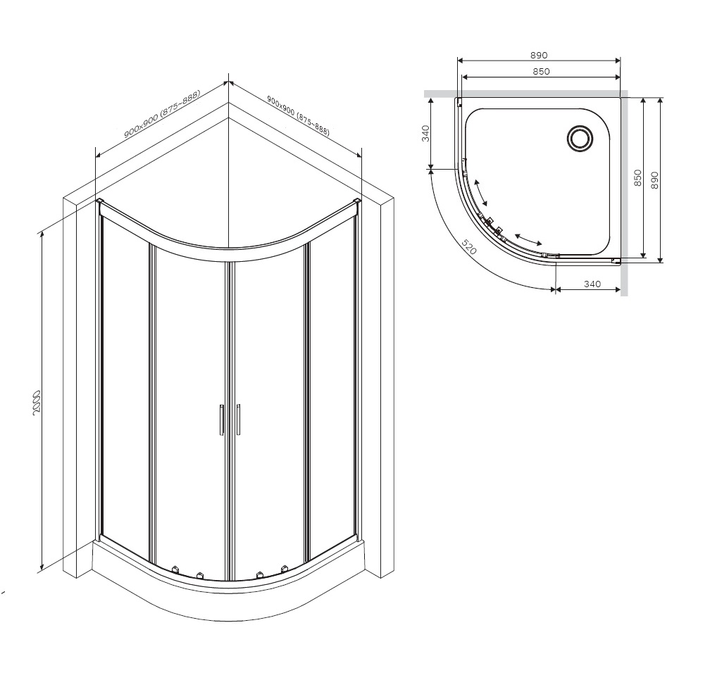Совместимо с душевым поддоном - артикул W90T-401-090W - приобретается отдельно.