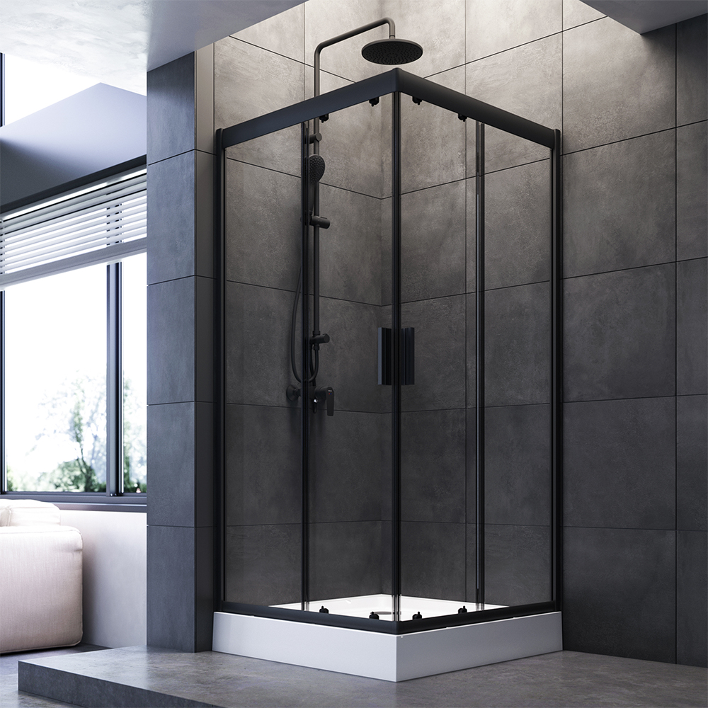 Уголок душевой AM.PM Gem 90x90x200 стекло прозрачное, профиль черный матовый (W90G-403-090BT)
