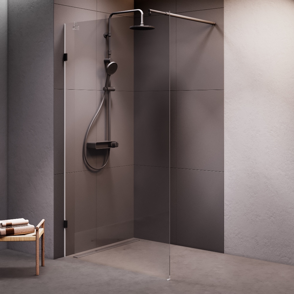 Минималистичная и современная душевая перегородка Walk In не только снизит визуальный шум в ванной но и благодаря оптимальным размерам впишется в любую ванную комнату.