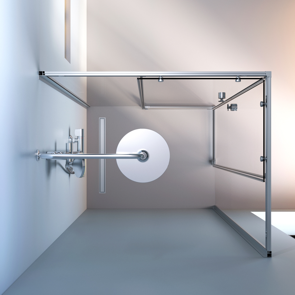 Прочная конструкция с надежными роликами увеличенного диаметра для плавного хода двери и закаленным стеклом. Толщина дверей – 6 мм. стенок – 4 мм. Беспрецедентно стойкое покрытие: надежный алюминиевый профиль окрашен методом порошкового нанесения при высокой температуре благодаря чему краска ложится на профиль идеально ровно а также проникает в структуру самого металла.