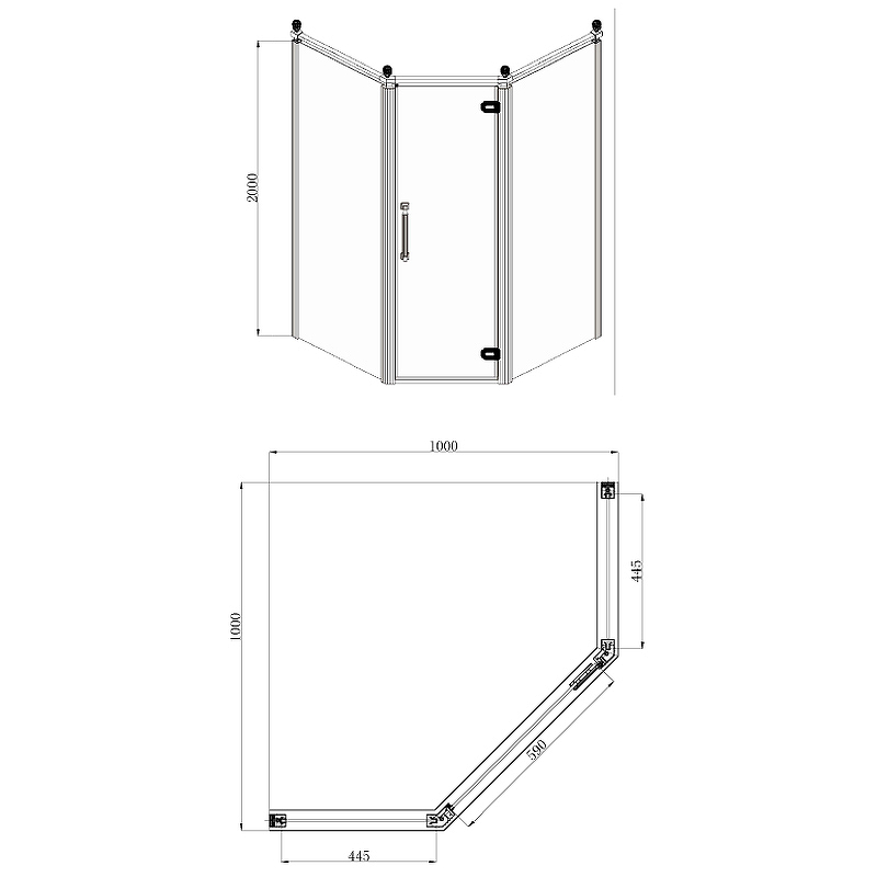 Душевое ограждение Azario Ontario 100х100х200 стекло прозрачное профиль хром золото (AZ-NBB3231 100 GOLD)