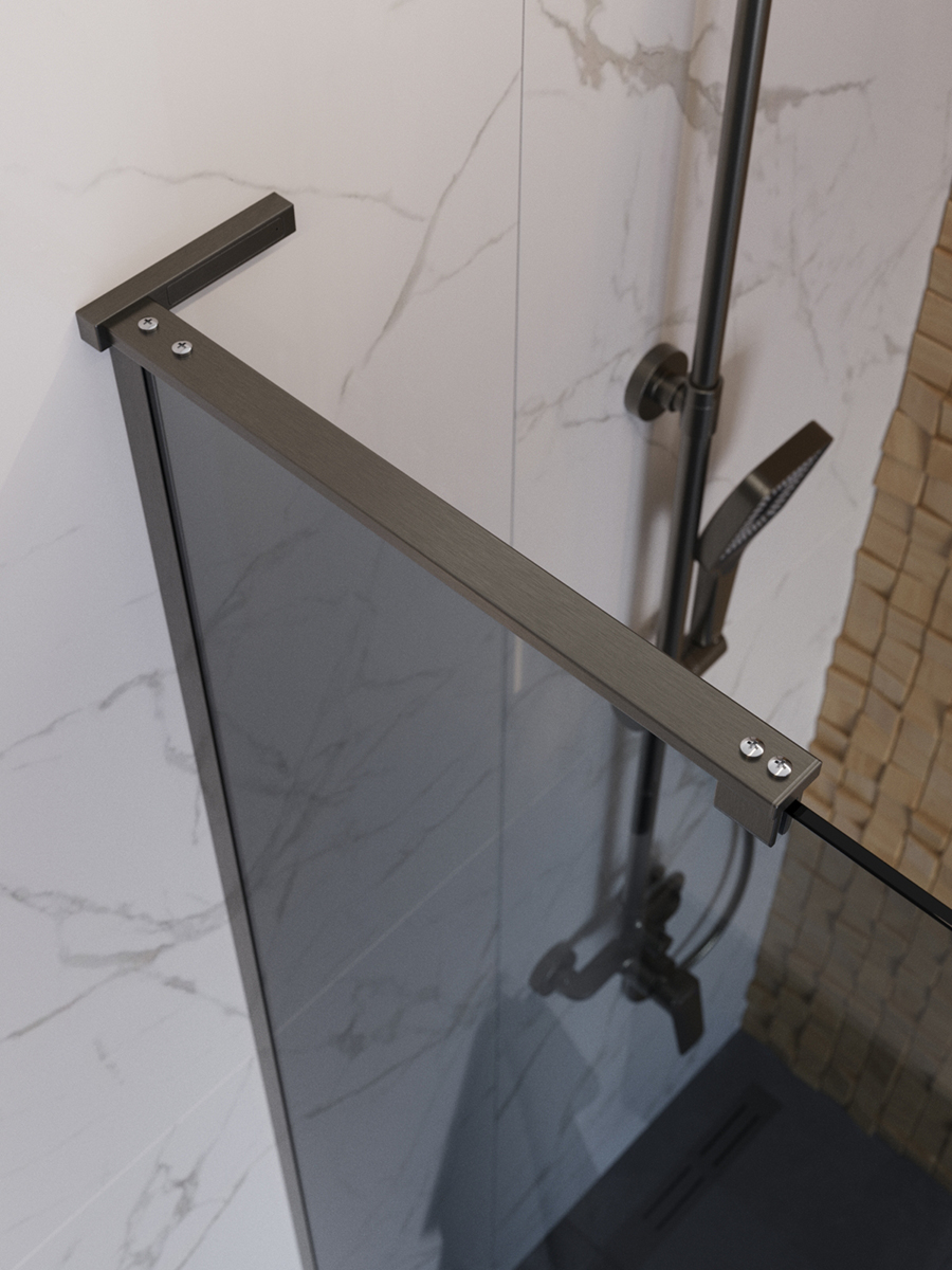L-образный кронштейн сохраняет минималистичный вид и не загромождает пространство, оставаясь практически незаметным в душевой зоне.