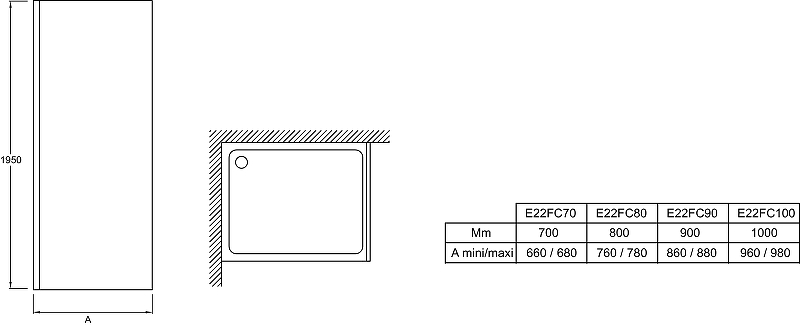Душевое ограждение Jacob Delafon Contra 90x195 стекло прозрачное, профиль черный (E22FC90-BL)