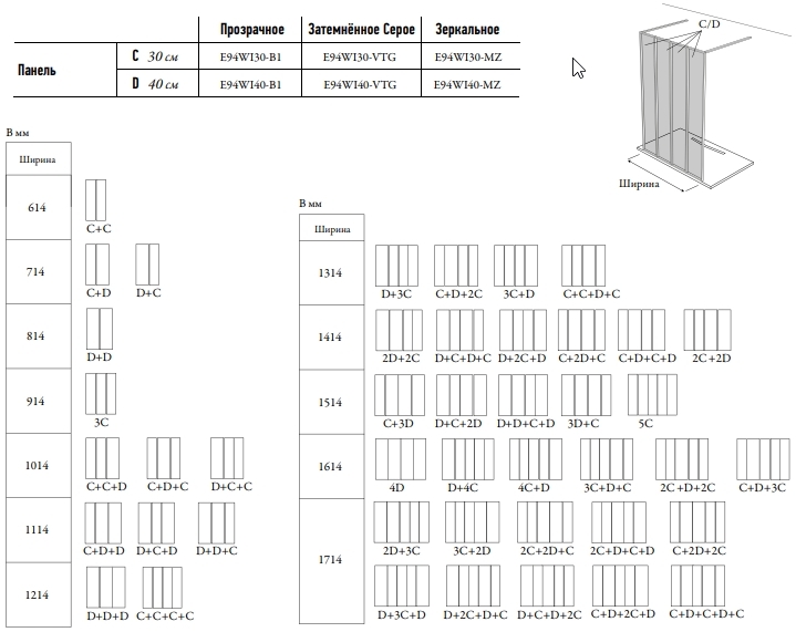 Душевое ограждение Jacob Delafon Nouvelle 40x200 стекло зеркальное, профиль черный (E94WI40-MZ)