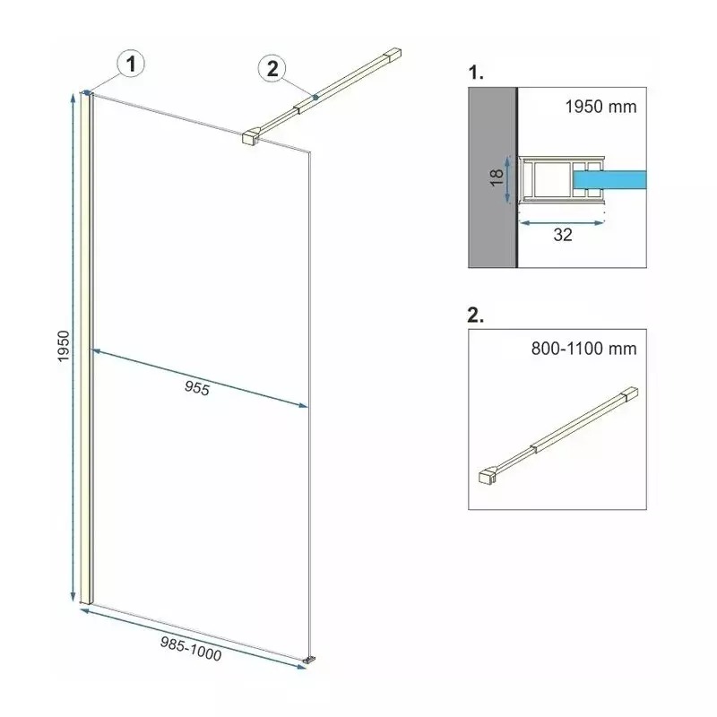 Душевое ограждение Rea Aero 100x195 стекло прозрачное, профиль золото матовое (REA-K4701)