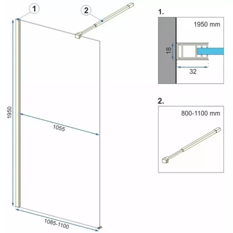 Душевое ограждение Rea Aero 110x195 стекло прозрачное, профиль золото (REA-K8441)