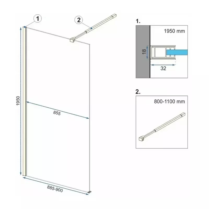 Душевое ограждение Rea Aero 90x195 стекло прозрачное, профиль золото матовое (REA-K470)