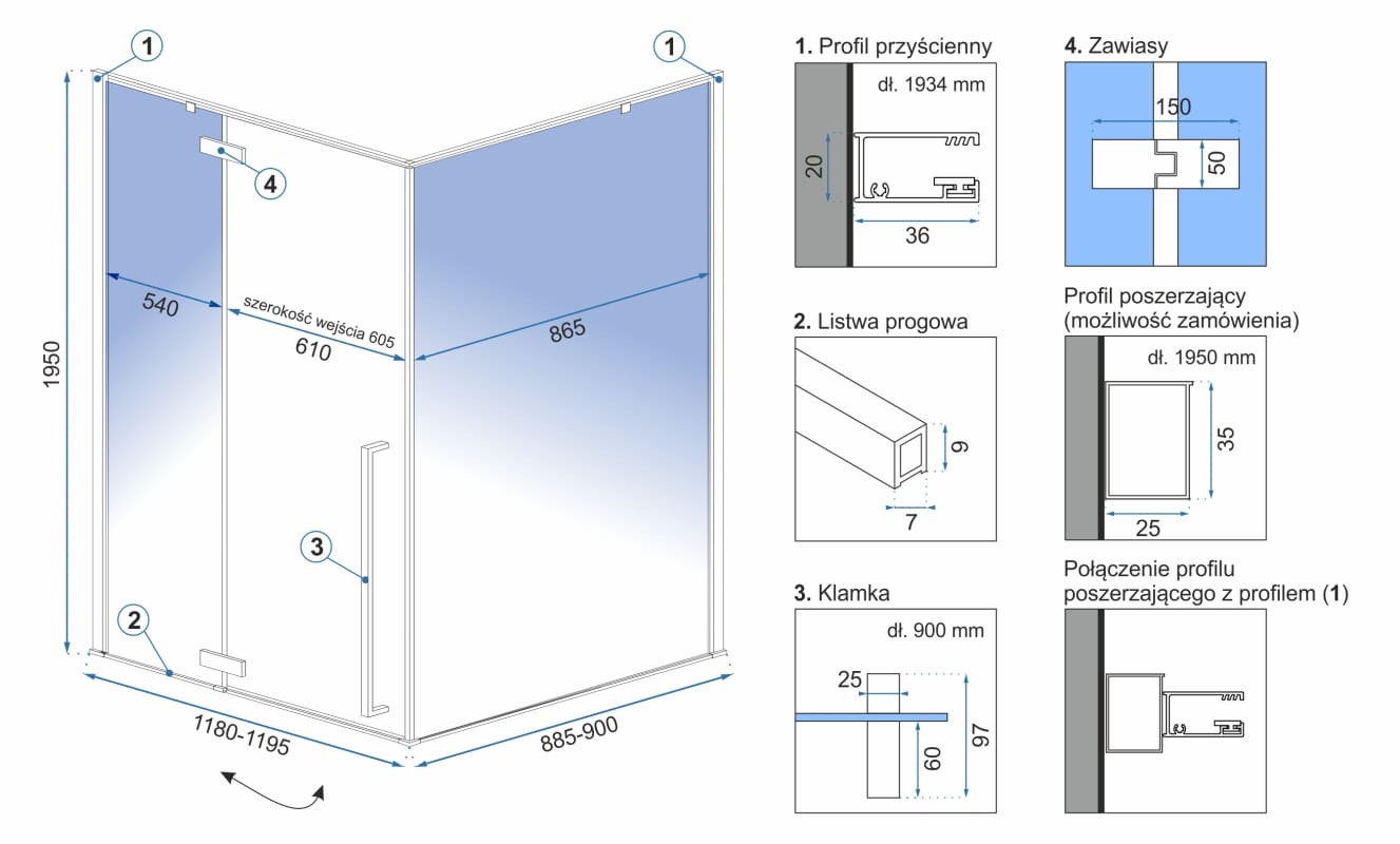 Душевое ограждение Rea Fargo 120x90x195 стекло прозрачное, профиль чёрный матовый (REA-K3214)