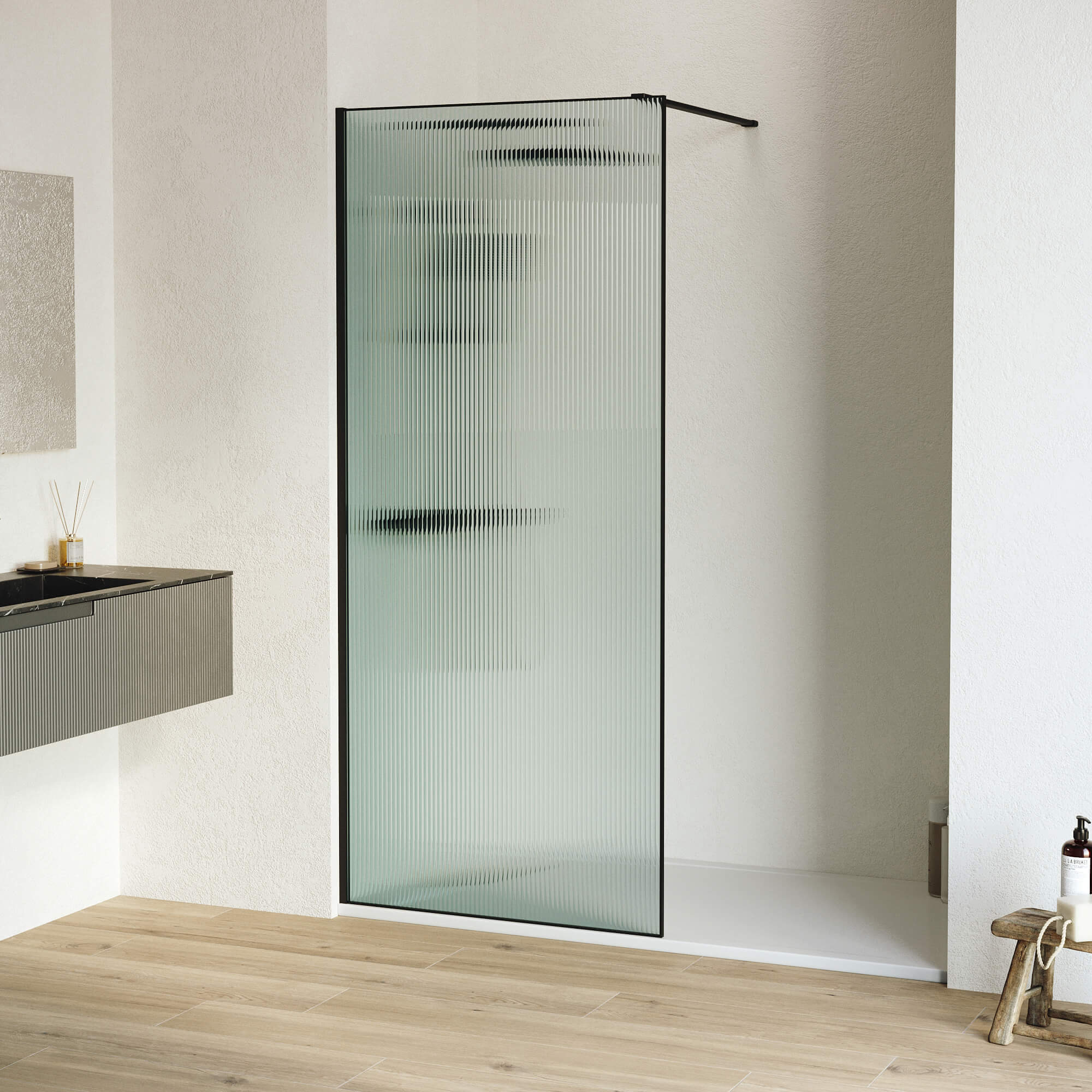 Душевое ограждение RGW Walk In 100x195 стекло Ribbed (ребристое), профиль черный (06100810-154)