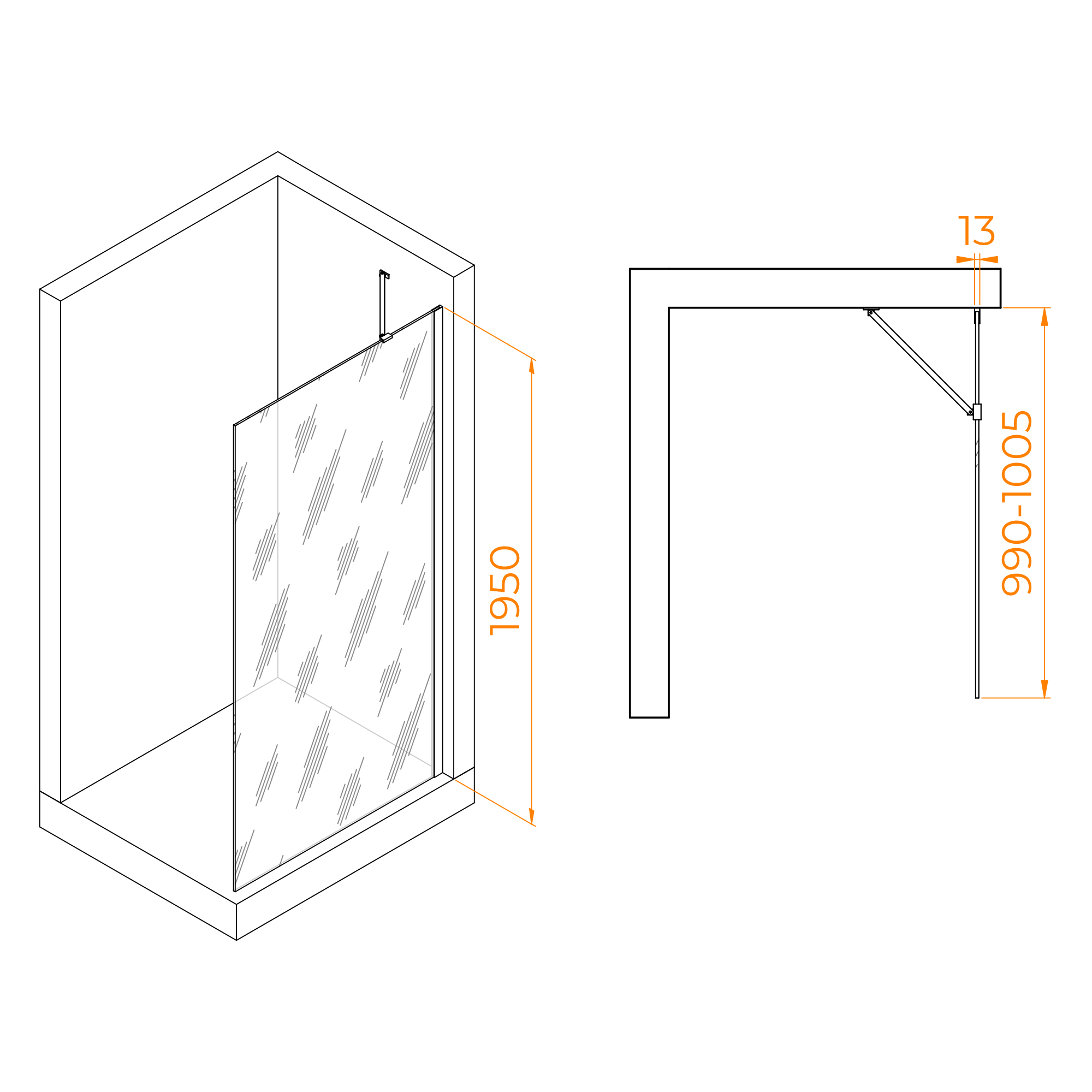 Душевое ограждение RGW Walk In 100x195 стекло тонированное, профиль хром (351011010-31)