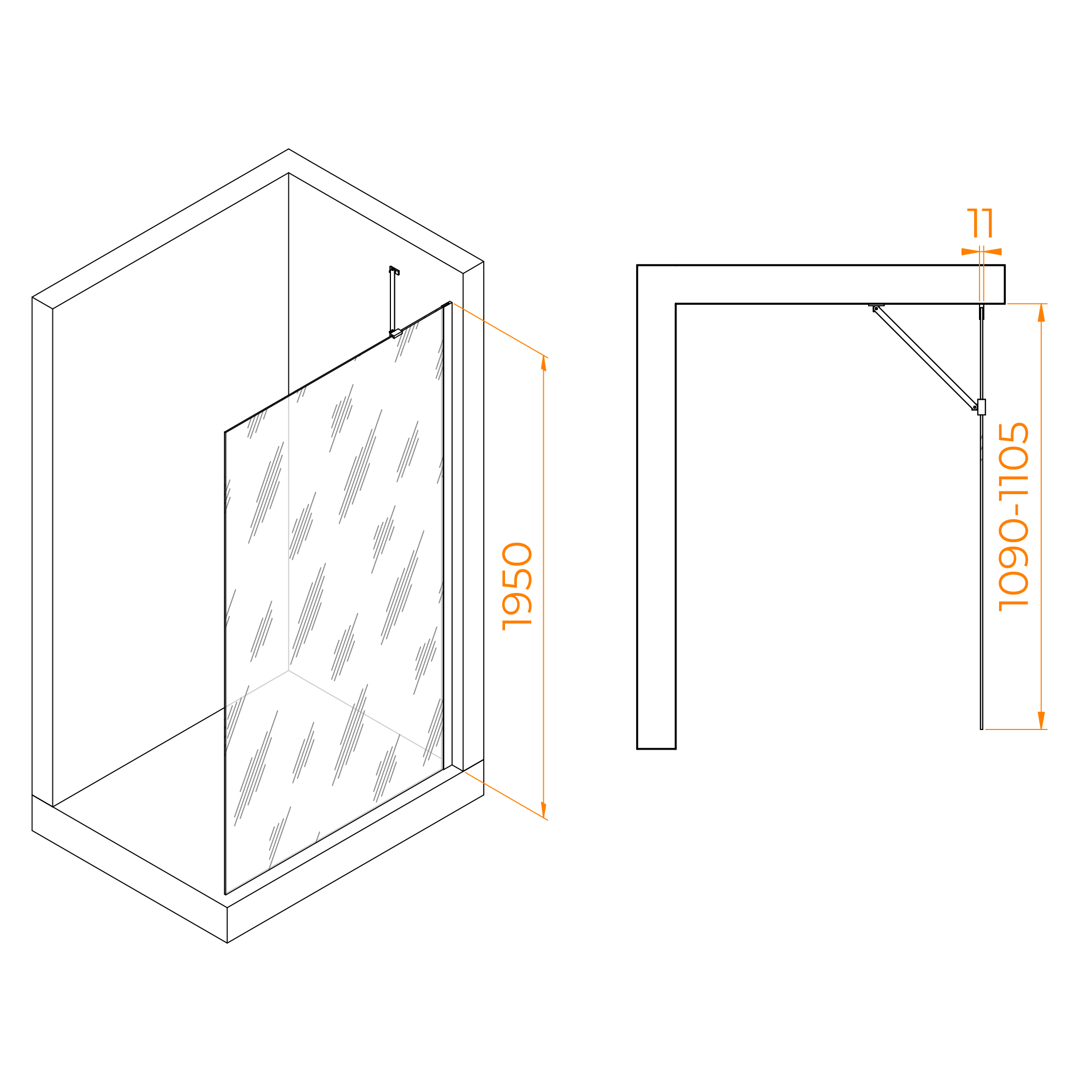 Профиль имеет цвет хром, что придает перегородке для душа современный и элегантный вид. Высота перегородки составляет 195 см, что обеспечивает комфортное использование для большинства пользователей.