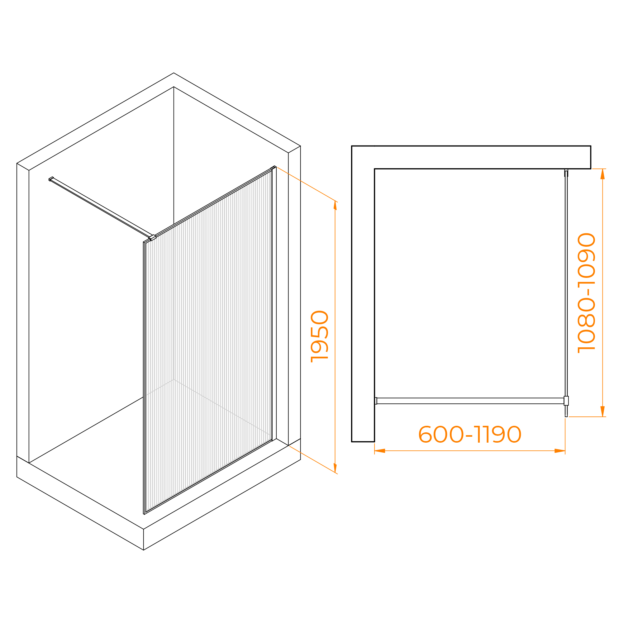 Душевое ограждение RGW Walk In 110x195 стекло рифленое, профиль черный (06100811-154)