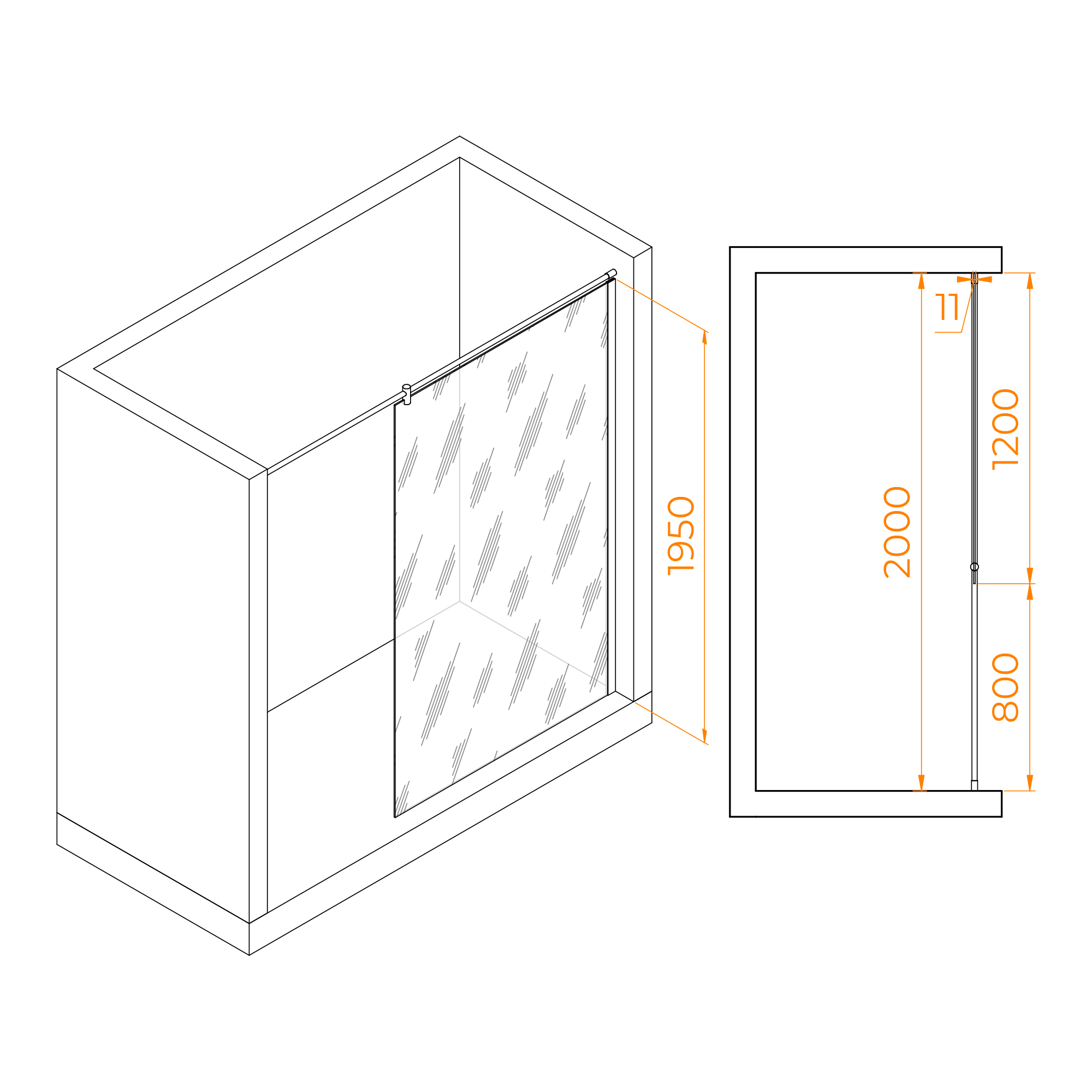Душевое ограждение RGW Walk In 120x195 стекло прозрачное, профиль хром (351003312-11)
