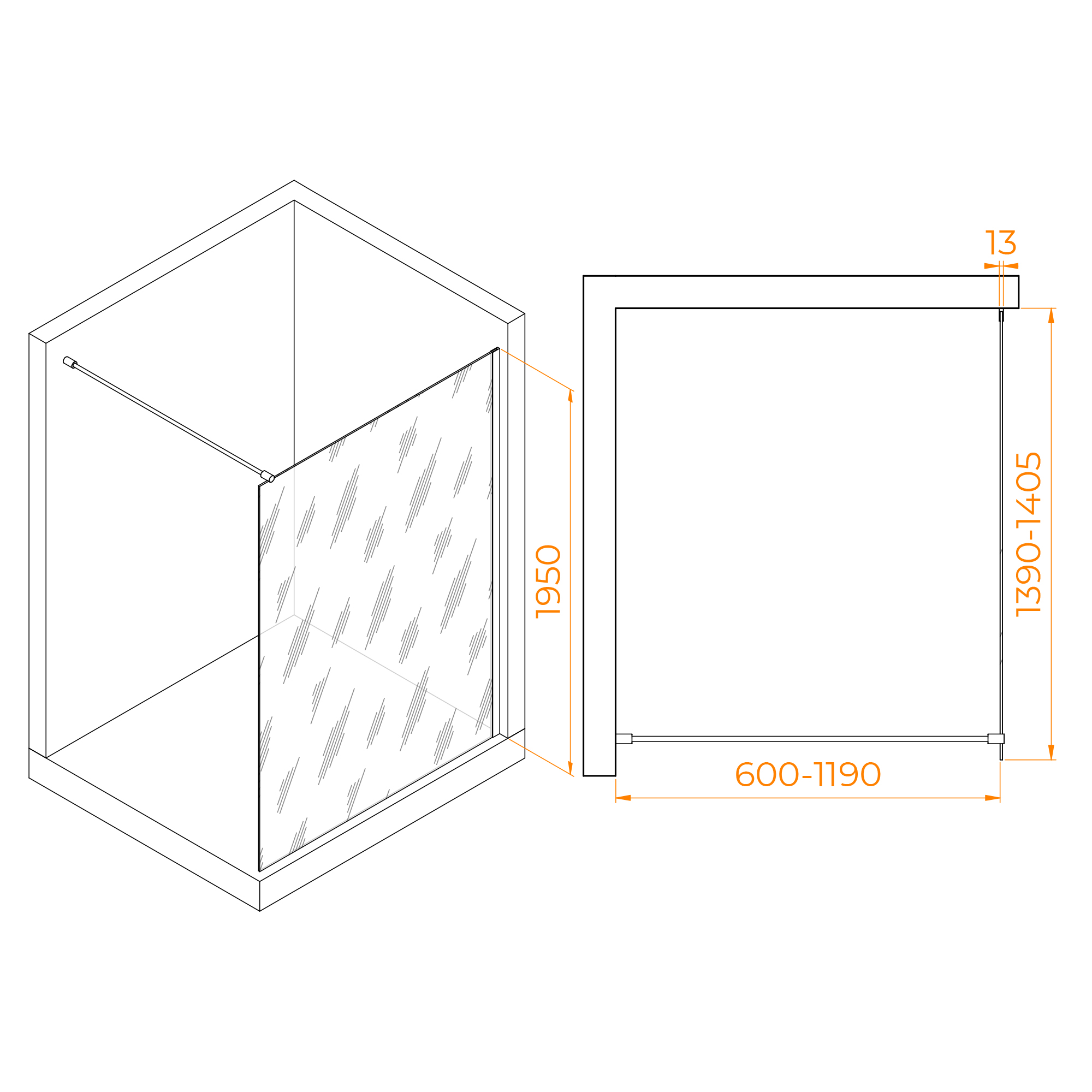 Душевое ограждение RGW Walk In 140x195 стекло прозрачное, профиль черный (351001014-14)