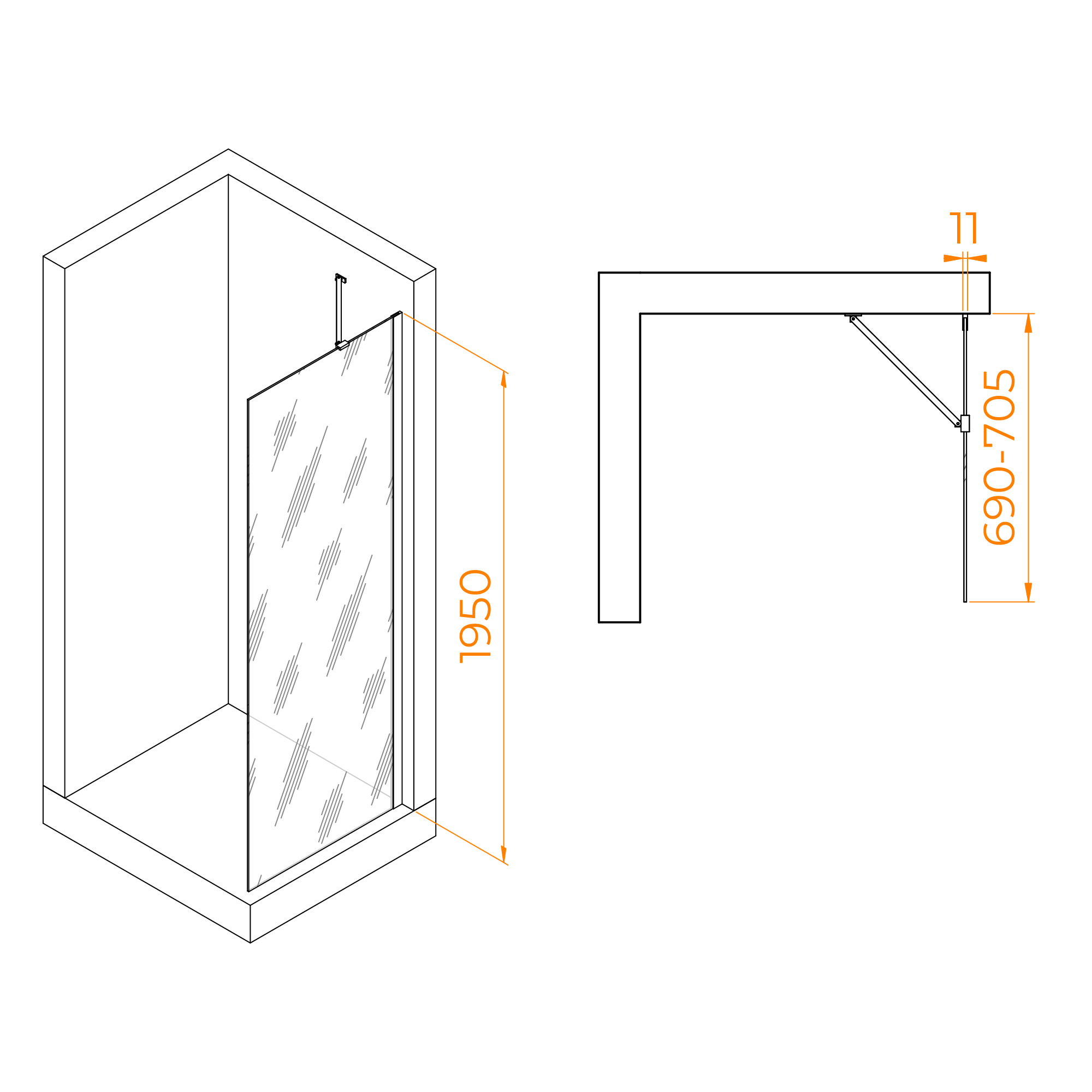 Душевое ограждение RGW Walk In 70x195 стекло прозрачное, профиль хром (351010207-11)