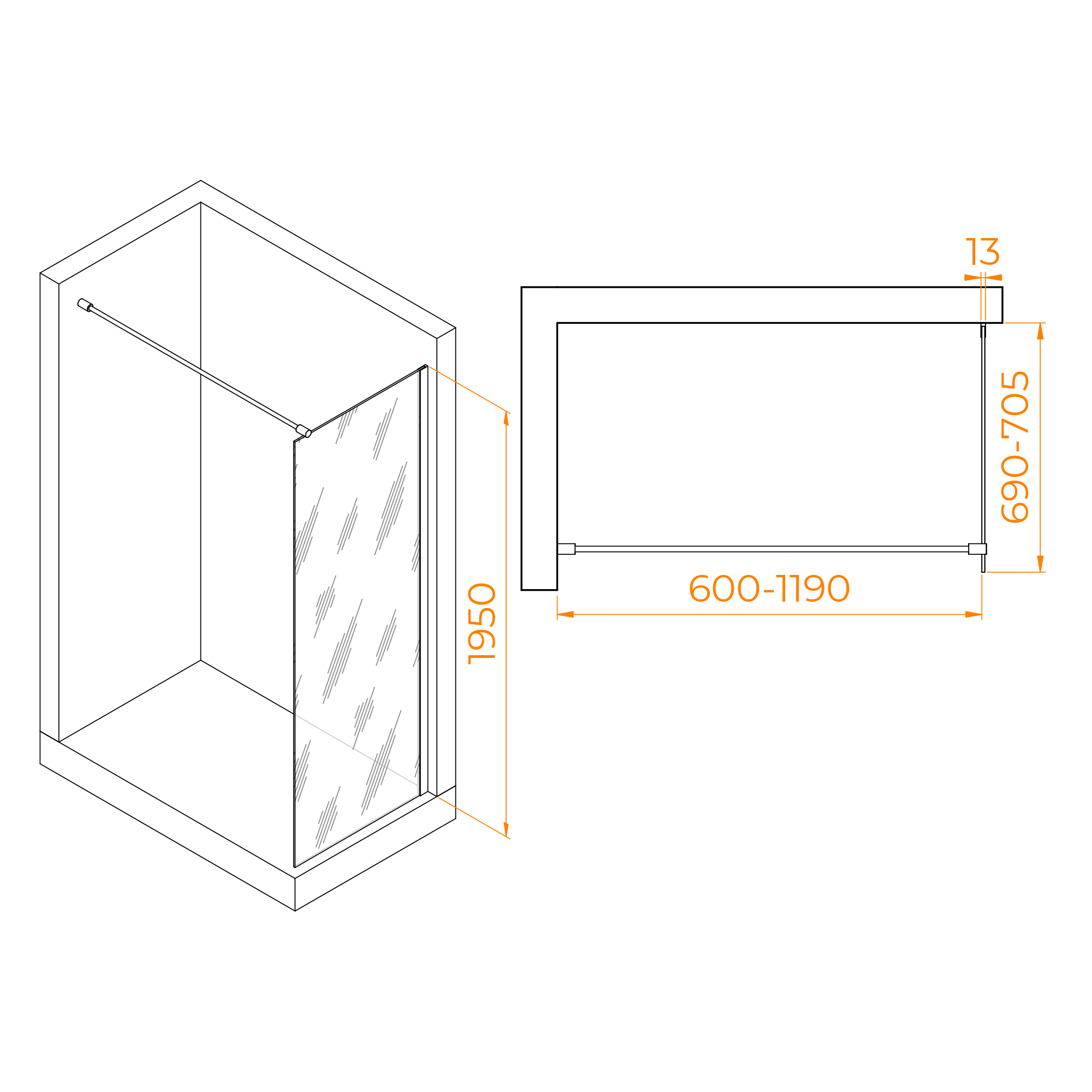 Душевое ограждение RGW Walk In 70x195 стекло тонированное, профиль хром (351001007-31)