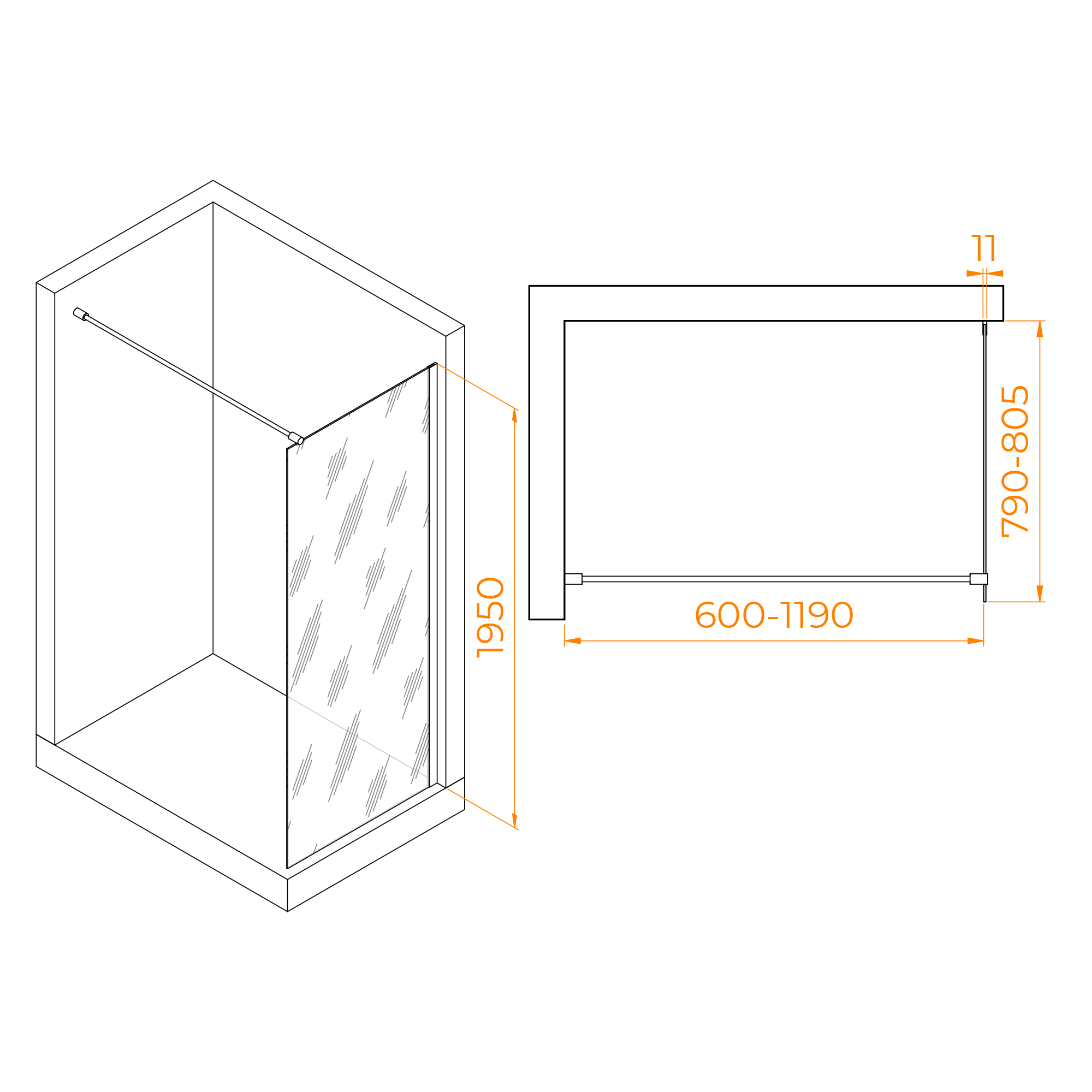 Душевое ограждение RGW Walk In 80x195 стекло матовое, профиль хром (35100208-21)