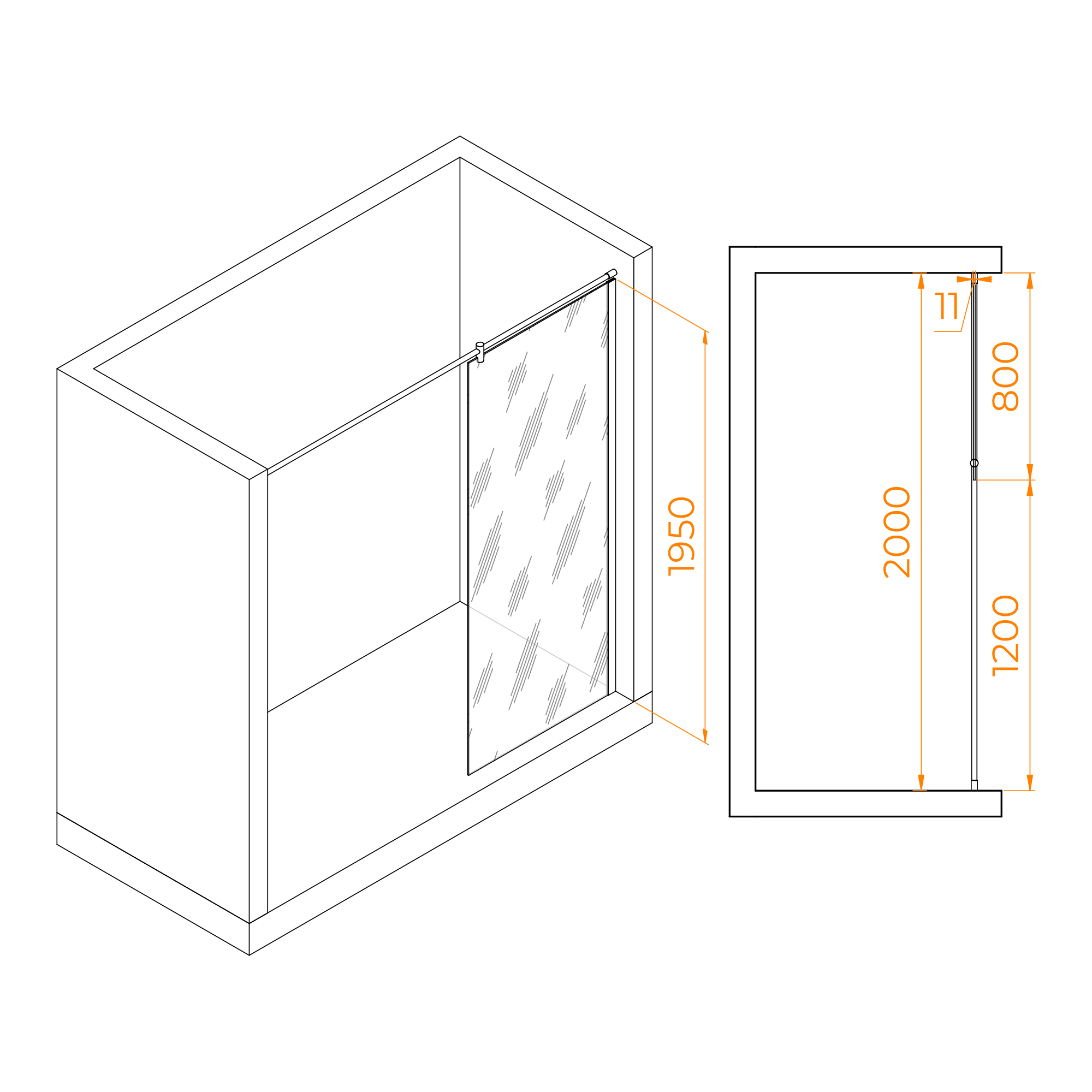 Душевое ограждение RGW Walk In 80x195 стекло прозрачное, профиль хром (351003308-11)