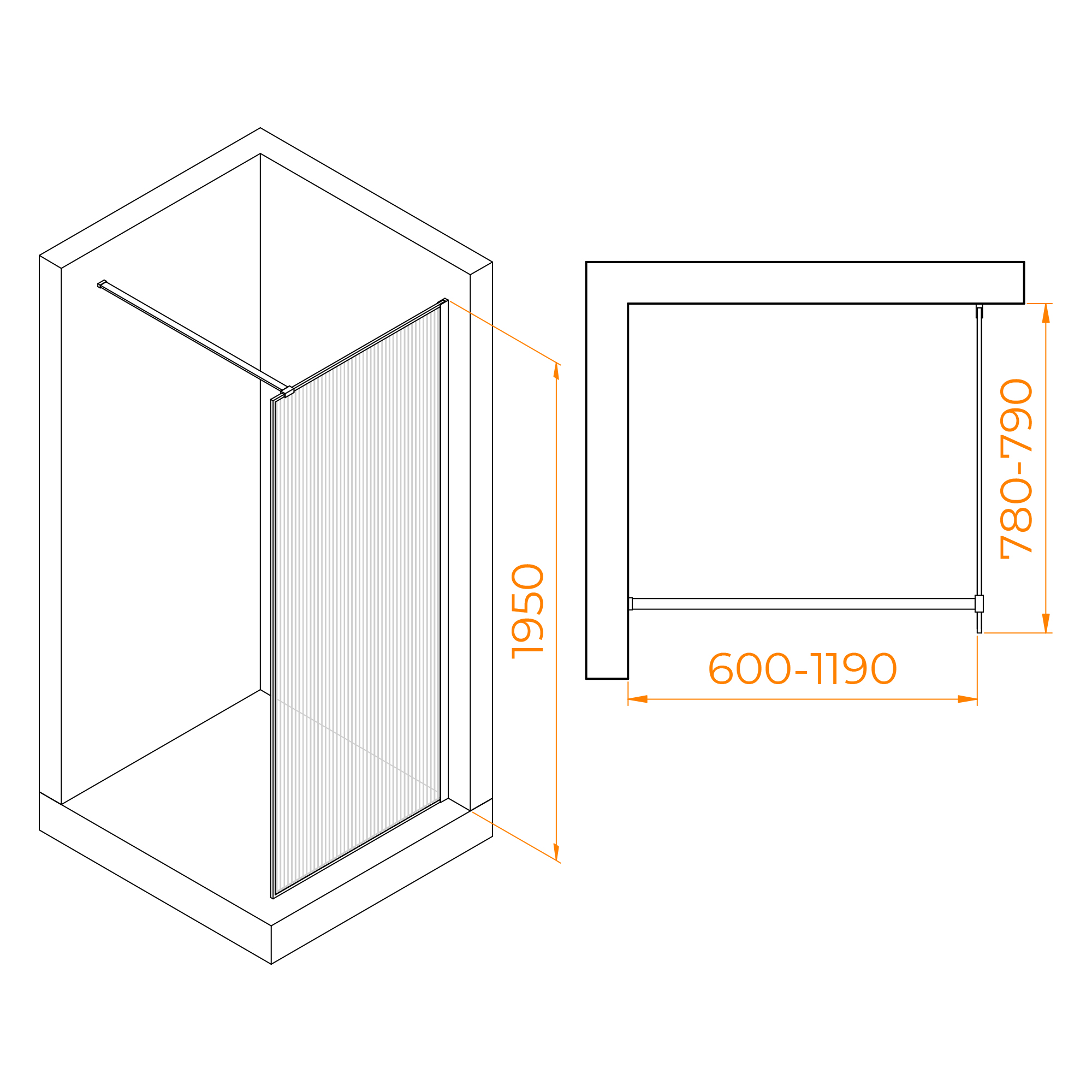Душевое ограждение RGW Walk In 80x195 стекло Ribbed (ребристое), профиль золото BRUSH (06100808-156)