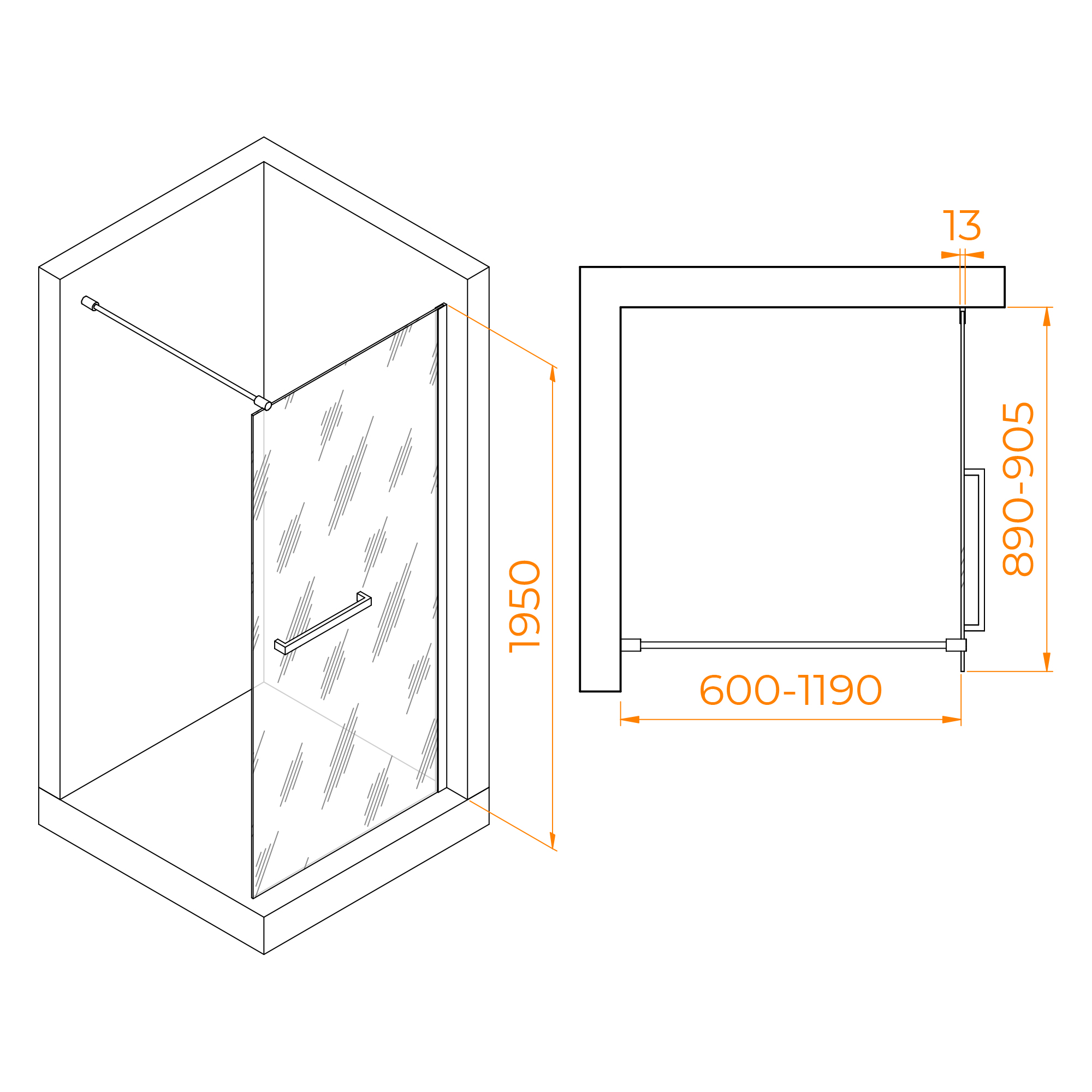 Душевое ограждение RGW Walk In 90x195 стекло прозрачное, профиль черный (35104009-14)