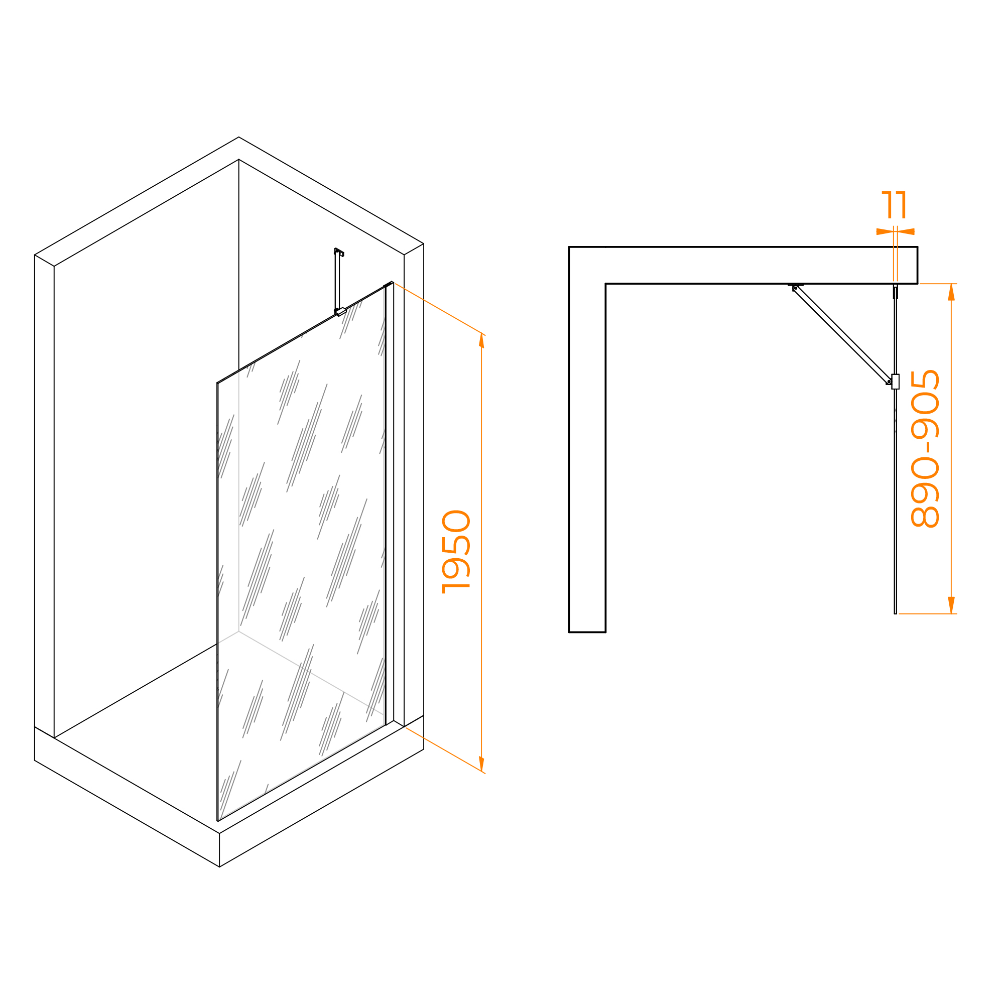 Душевое ограждение RGW Walk In 90x195 стекло прозрачное, профиль золото BRUSH (351010209-16)