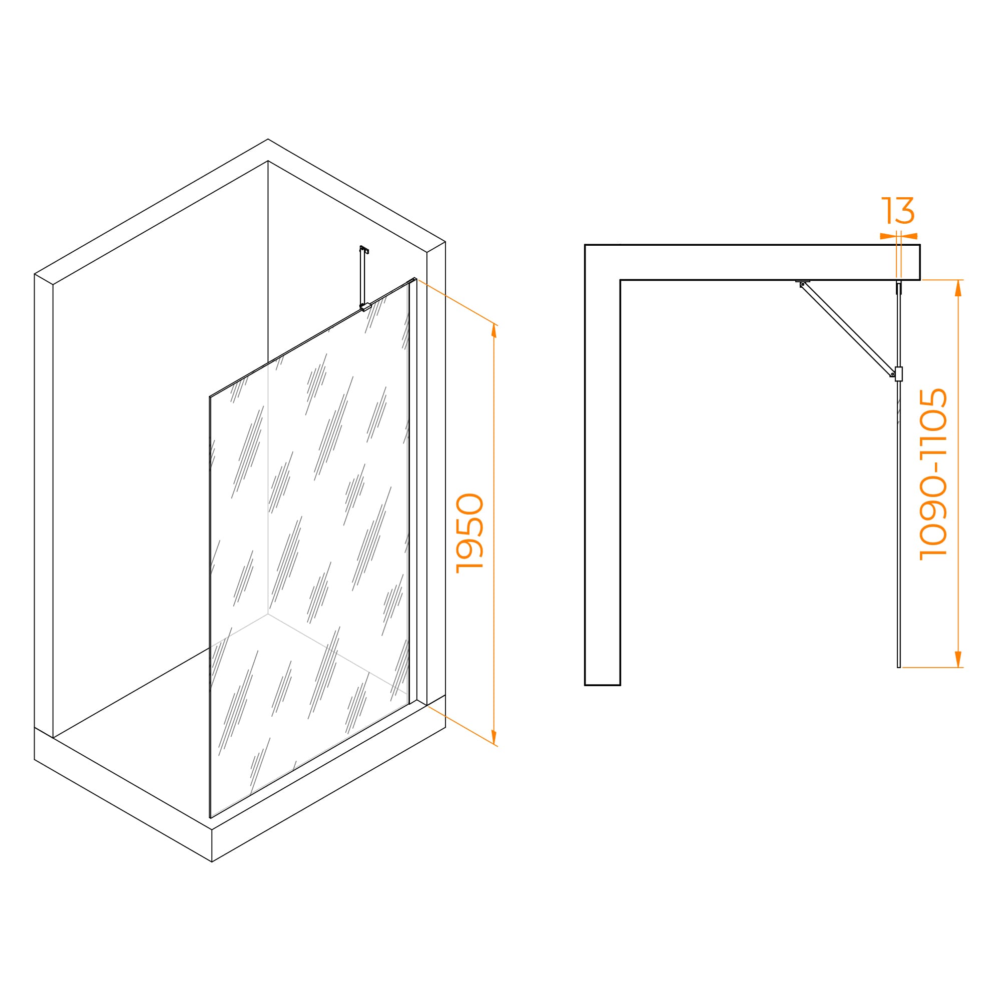 Душевое ограждение RGW Walk In WA-110 110x195 стекло матовое, профиль хром (351011011-21)