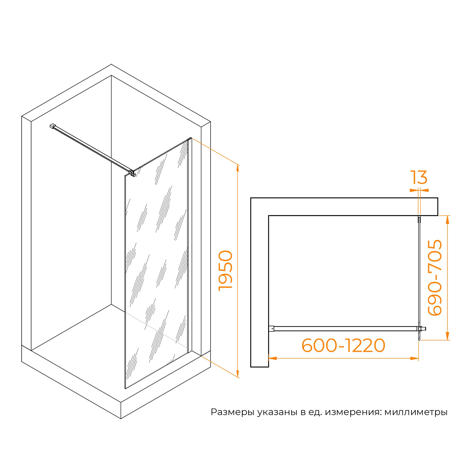 Душевое ограждение RGW Walk In WA-210 80x195 стекло прозрачное, профиль хром (351021008-11)