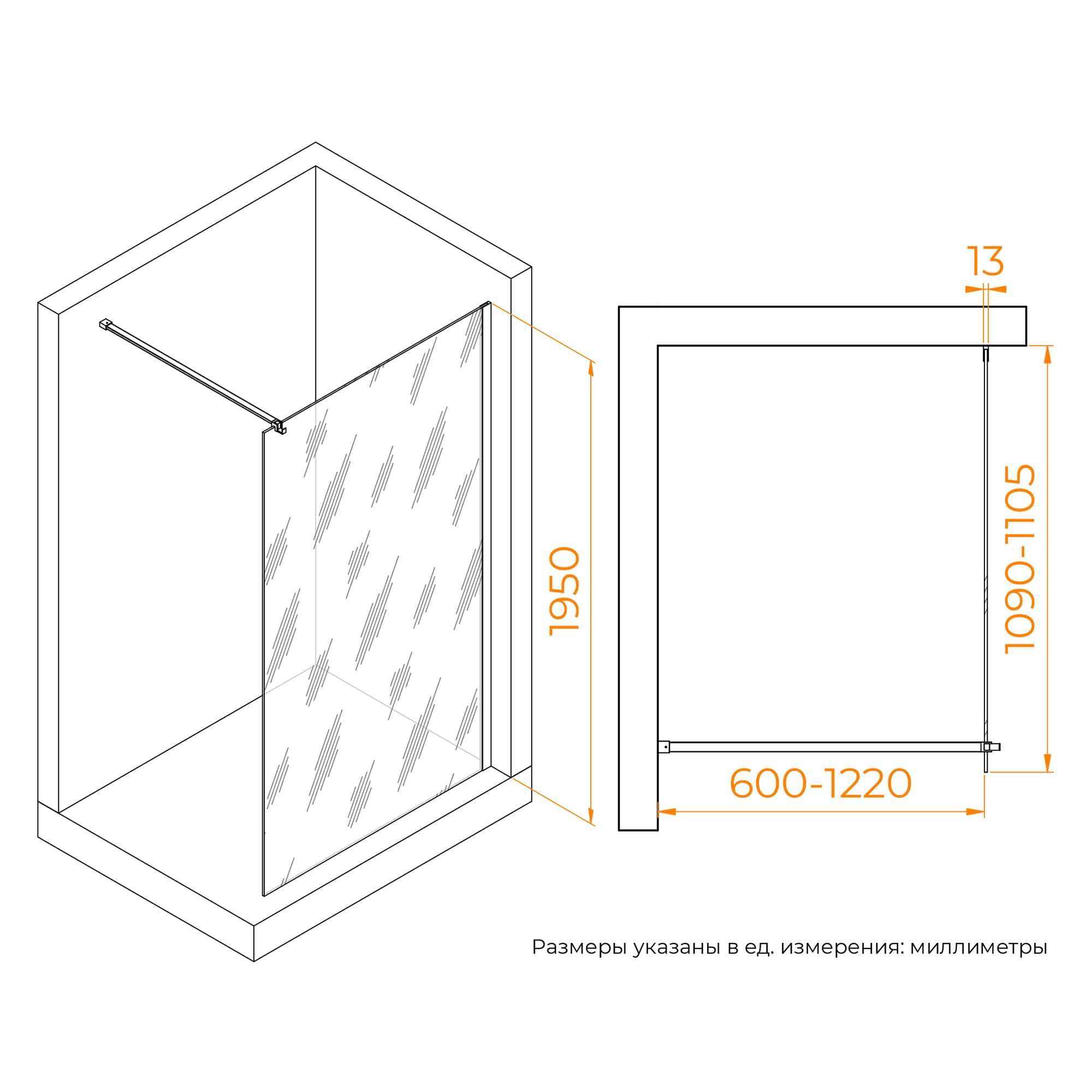 Душевое ограждение RGW Walk In WA-210-B 100x195 стекло матовое, профиль черный (351021010-24)