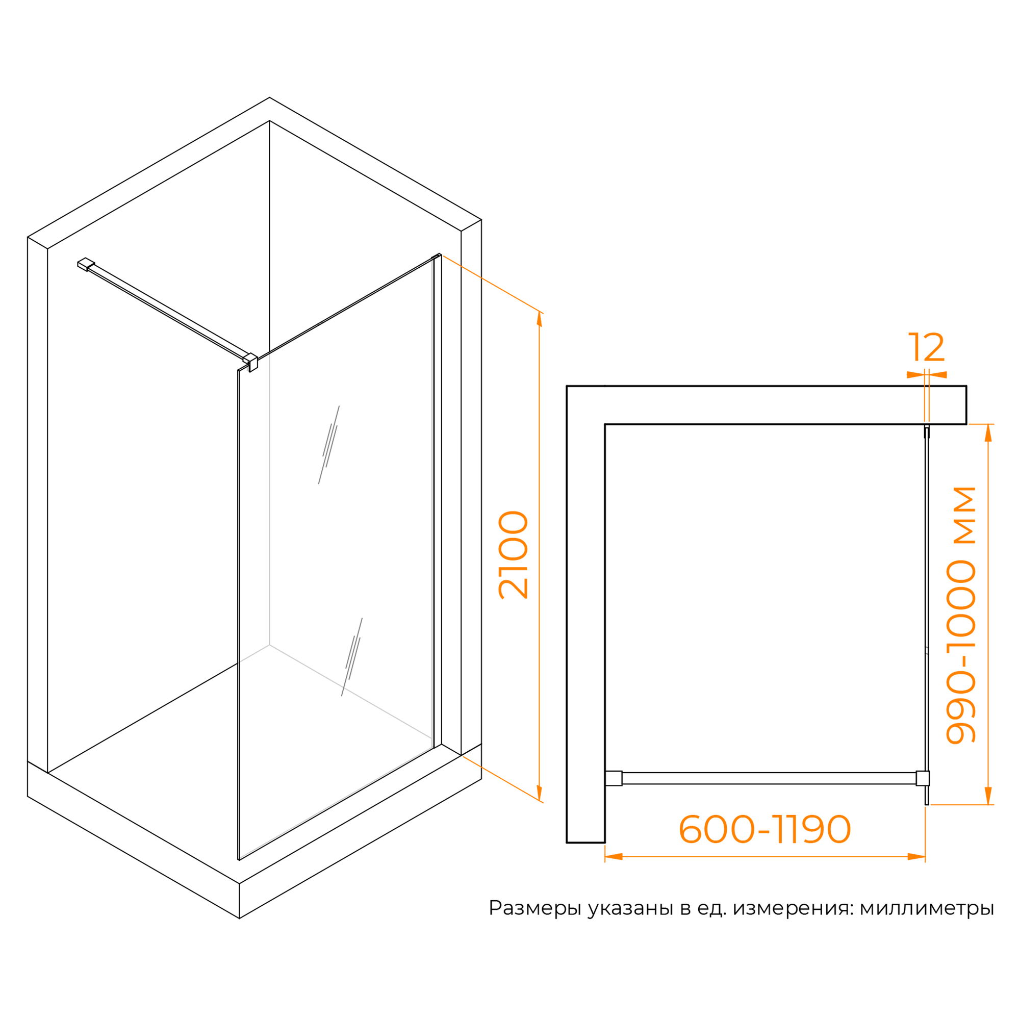 Душевое ограждение RGW Walk In WA-55 90x210 стекло лед, профиль хром (33105509-231)