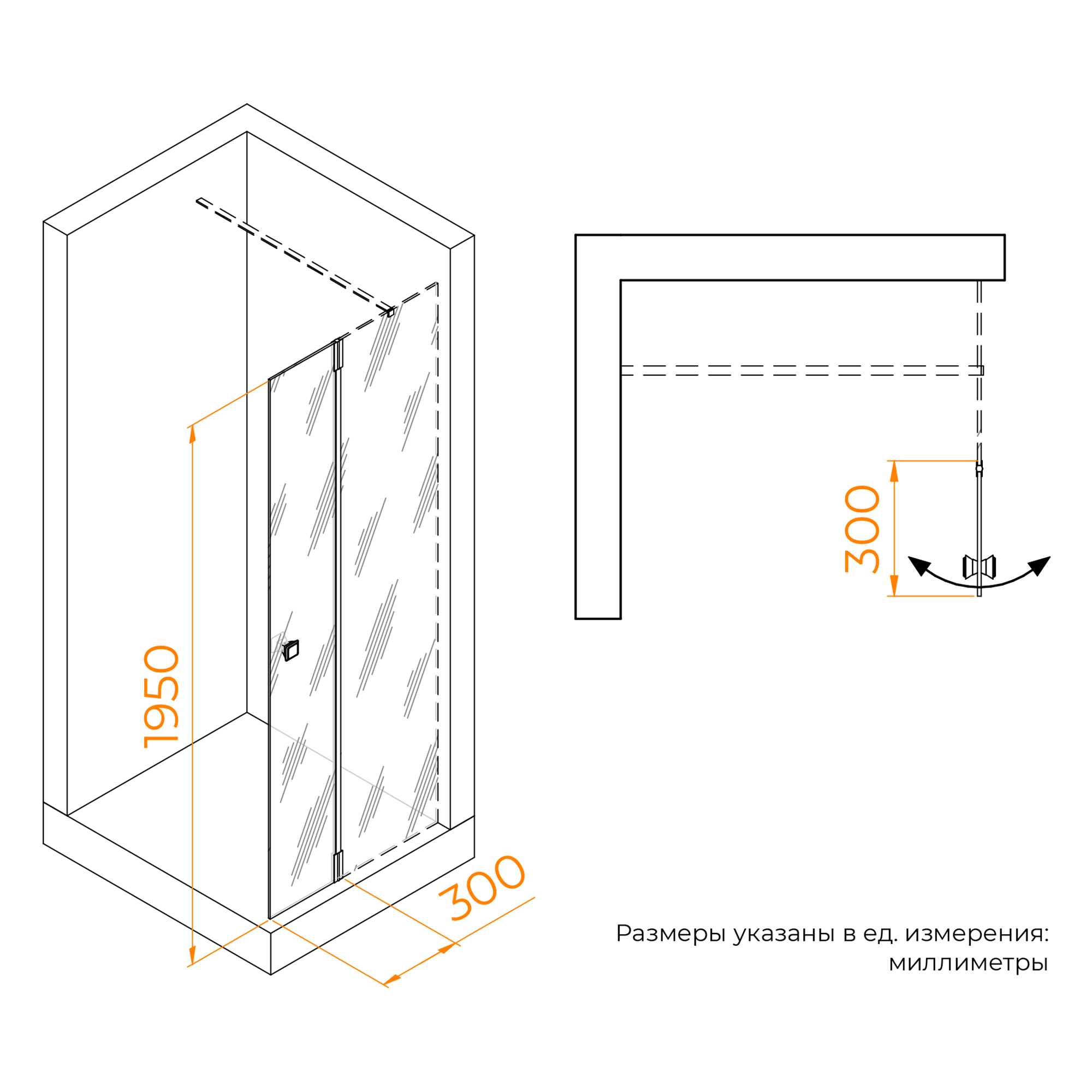Душевое ограждение RGW Z-072-B 30x195 стекло прозрачное, профиль черный (352207203-14)