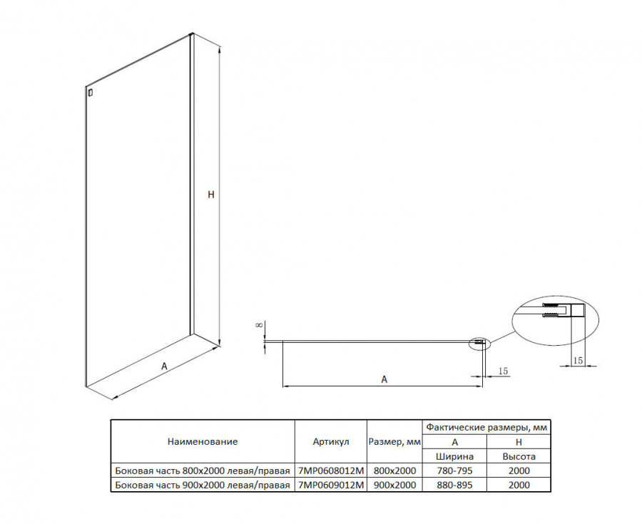 Безопасное закаленное стекло 8 мм с покрытием МaxiClean Без профильная облегченная конструкция Профили из нержавеющей стали, с регулировкой 0-15 мм Уплотнители высокого качества Быстрая и простая установка Возможна установка без поддона