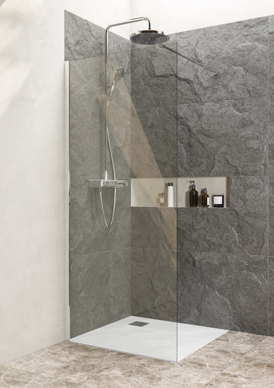 Душевое ограждение Metropolis Walk-In для свободного входа в душевое пространство выполнено из безопасного закаленного прозрачного стекла 8 мм с гидрофобным покрытием MaxiClean. Алюминиевый хромированный профиль надежно фиксирует ограждение к стене, а специальный фиксатор позволяет установить данное ограждение в душевое пространство шириной до 1200 мм. Для установки на пространство менне 1200 мм, фиксатор просто подрезается. Возможен монтаж без душевого поддона.