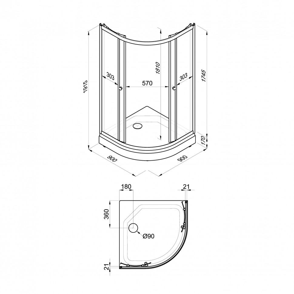 Душевое ограждение Triton Грэй 90x90 стекло тонированное, профиль белый (DK374)