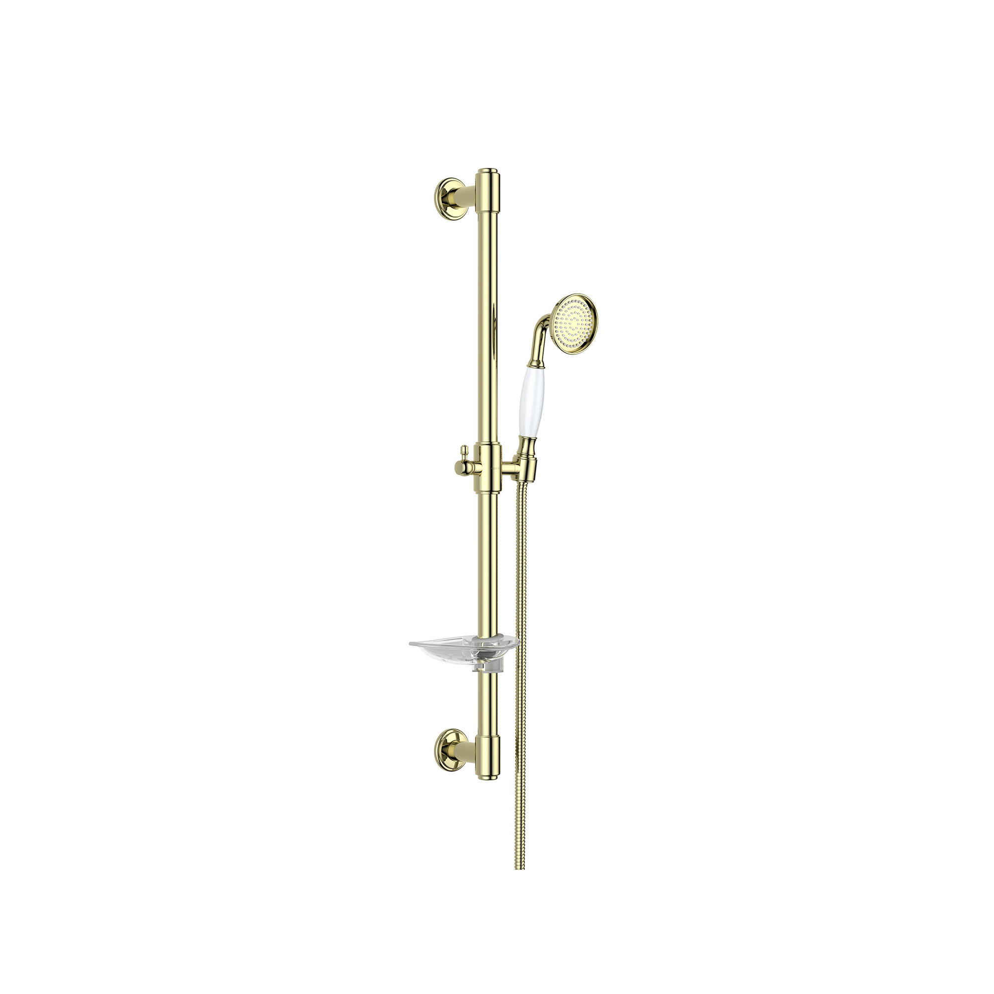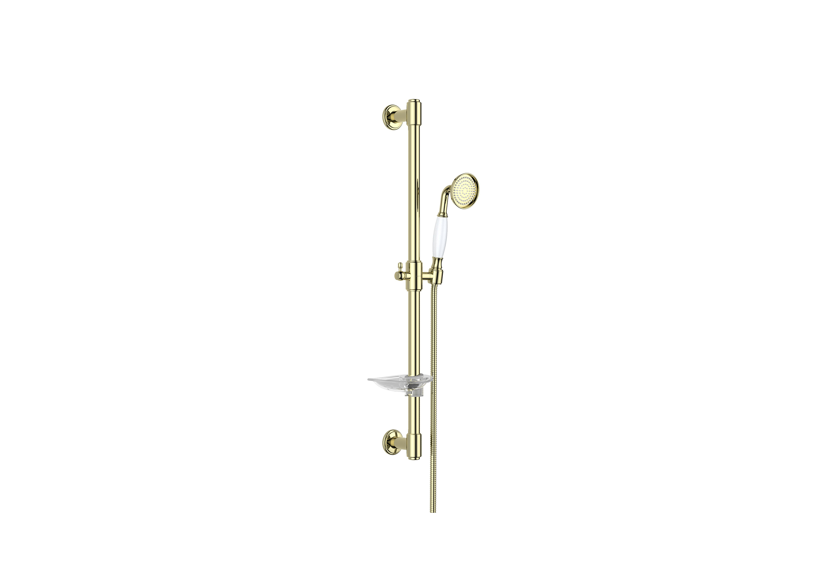 латунные держатели, душевая штанга из нерж с мыльницей, душевой шланг из нерж., длина 1,5м, ручной душ из латуни, 1 функции