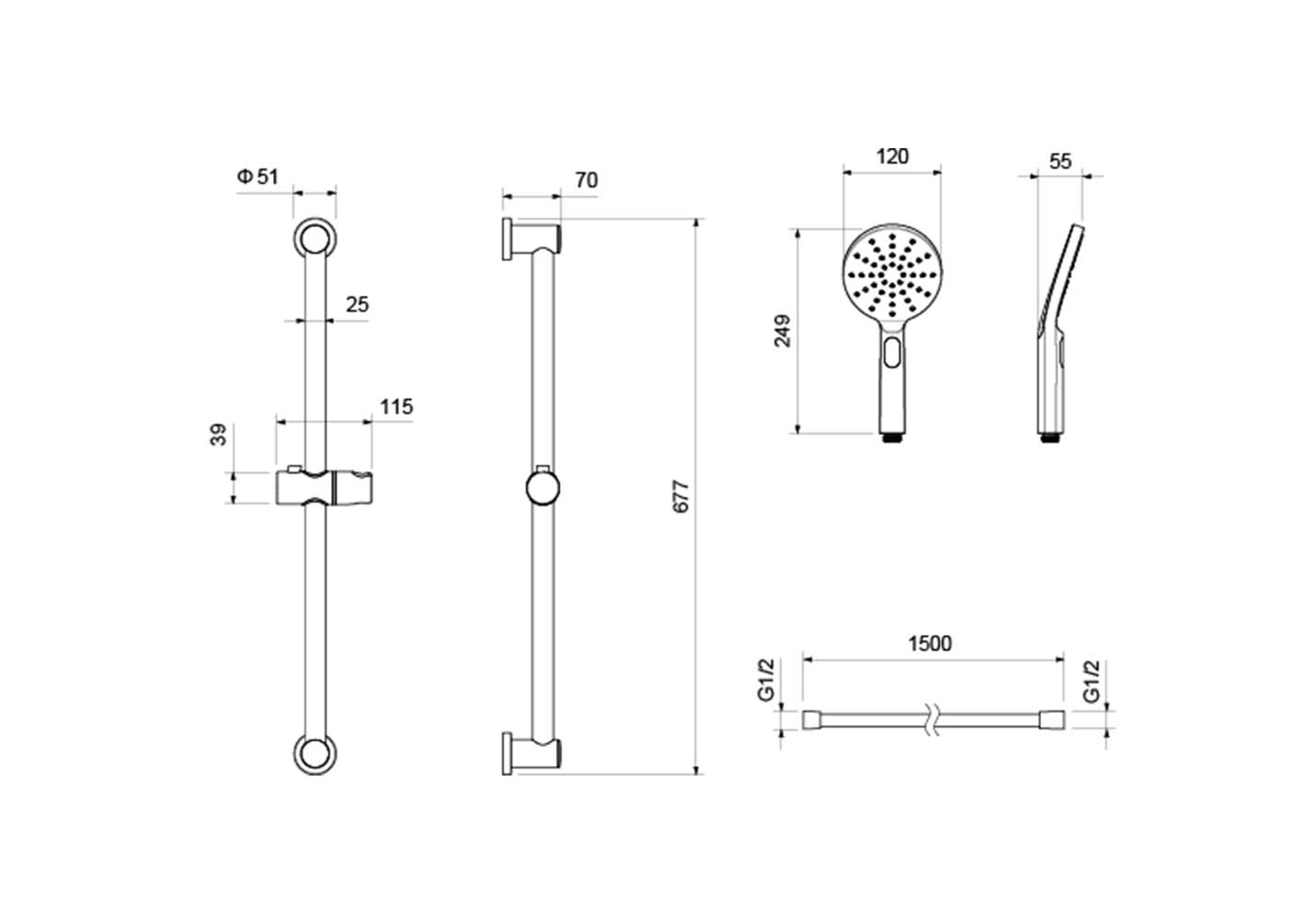 душевая штанга из нерж., ручной душ из пластика, 3 функции, душевой шланг из пластика, длина 1,5м,